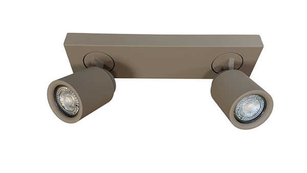 De 2 lichts spot heeft een lengte van 32 cm , 8 cm breed en de hoogte is 14 cm, de cilinder van de spot heeft een doorsnede van 6,5 cm.