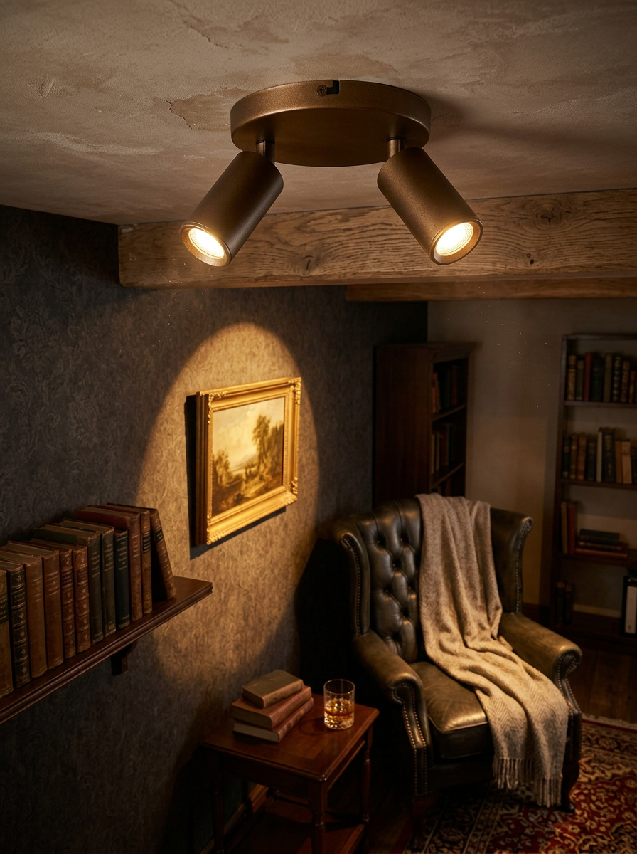 De Scolo spot is een stijlvolle en praktische plafondspot met een moderne uitstraling. De brons-gouden afwerking zorgt voor een warme en luxe look die perfect past binnen diverse interieurstijlen zoals modern, hotel chique, industrieel of klassiek.