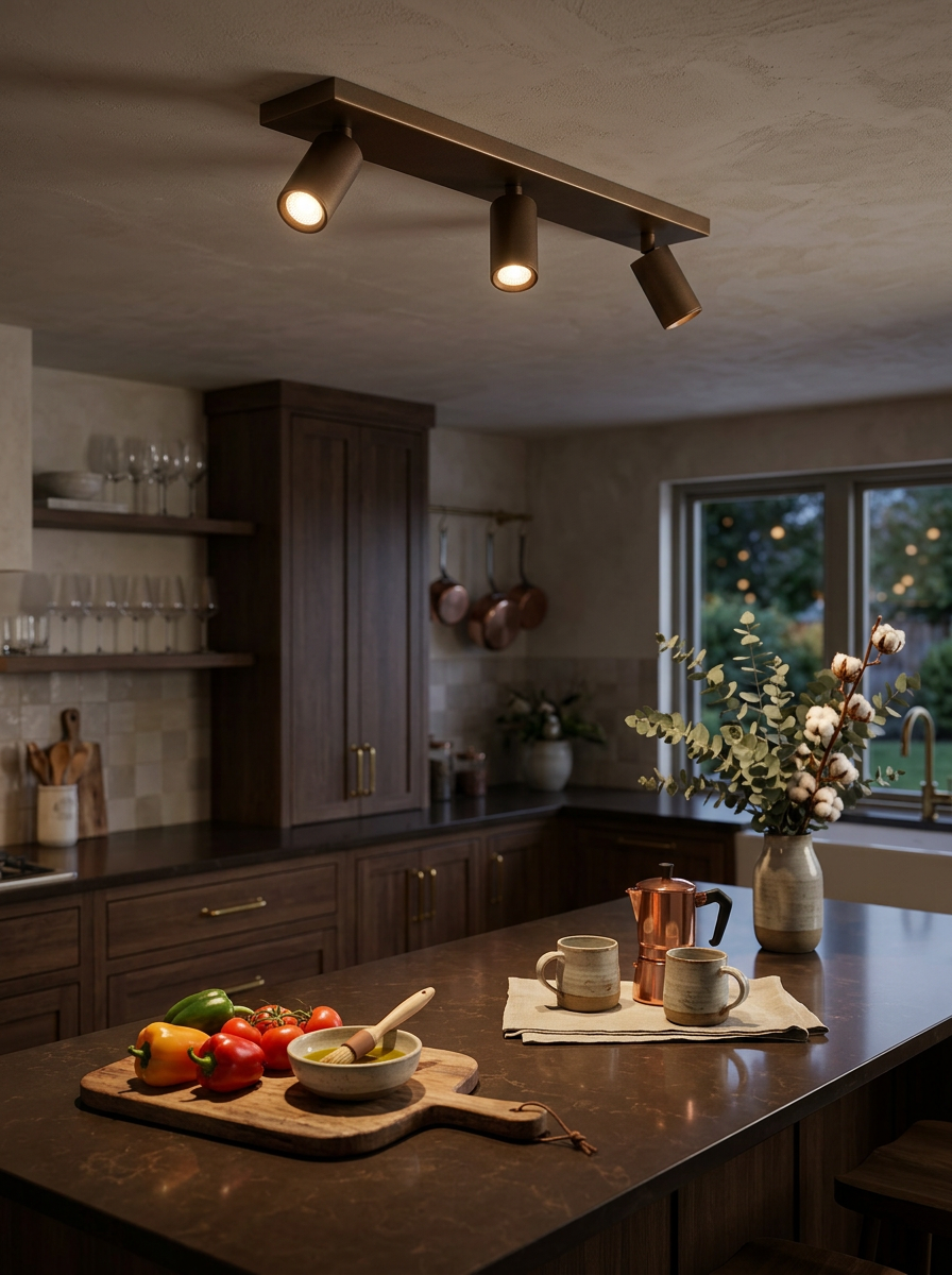 De Scolo spot is een stijlvolle en praktische plafondspot met een moderne uitstraling. De brons-gouden afwerking zorgt voor een warme en luxe look die perfect past binnen diverse interieurstijlen zoals modern, hotel chique, industrieel of klassiek.