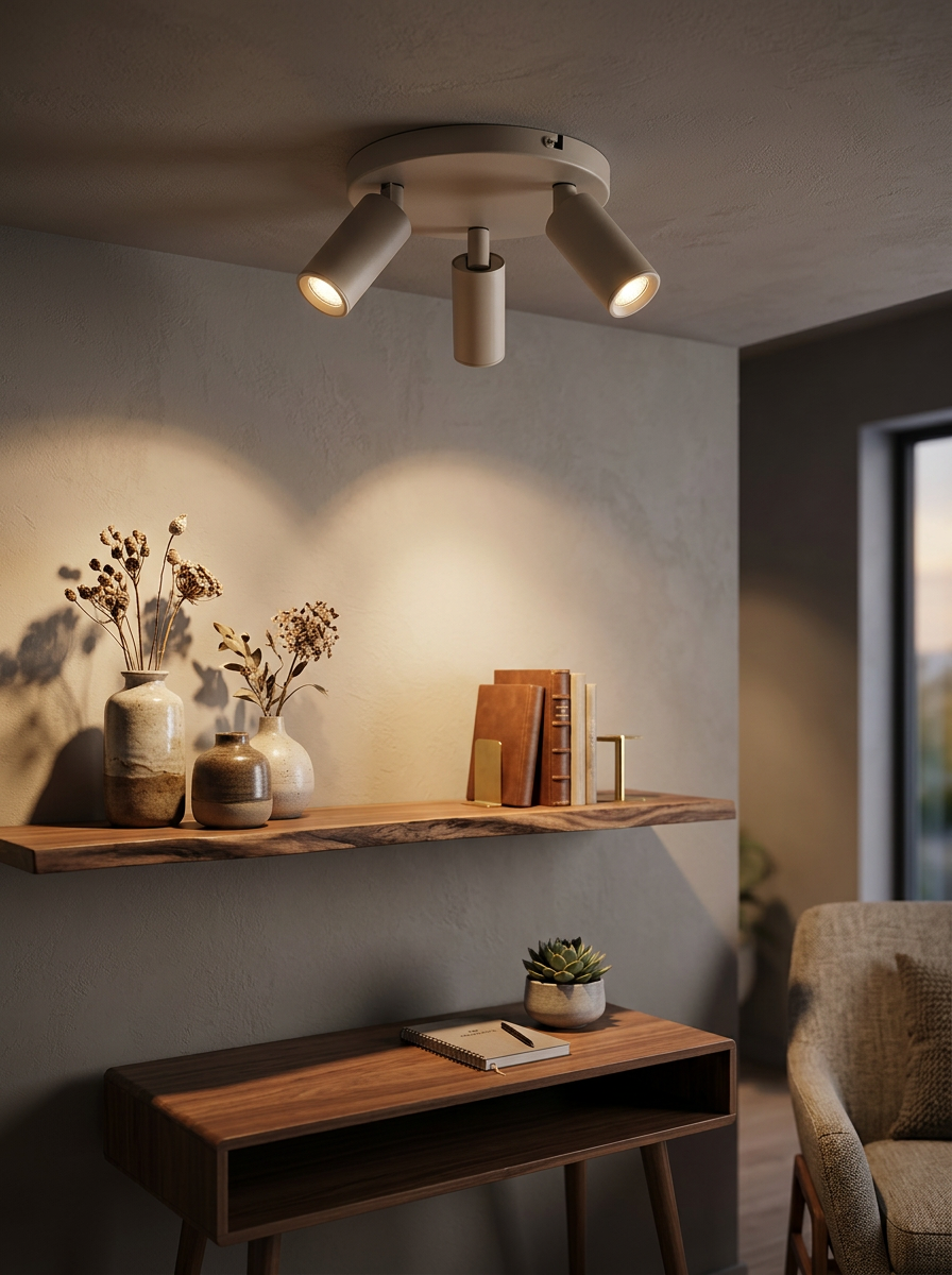 Met een formaat van 18 cm is deze 3-lichts spot compact maar veelzijdig. De drie spots zijn richtbaar, waardoor je het licht eenvoudig kunt richten op de plek waar je het nodig hebt. Ideaal voor het uitlichten van een werkblad, wand, kunstobject of specifieke zone in de ruimte.