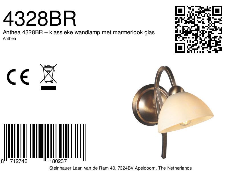 Anthea 4328BR – klassieke wandlamp met marmerlook glas