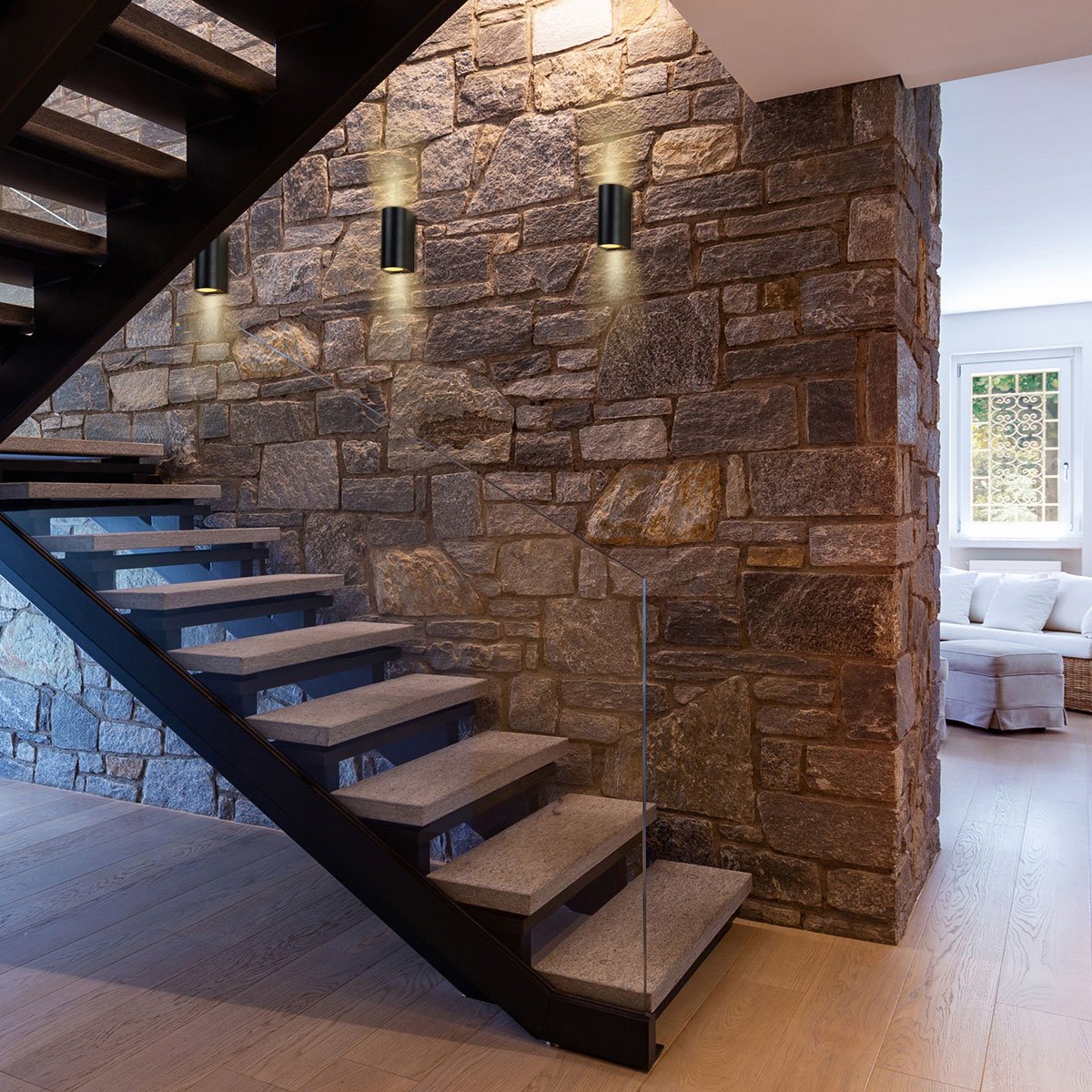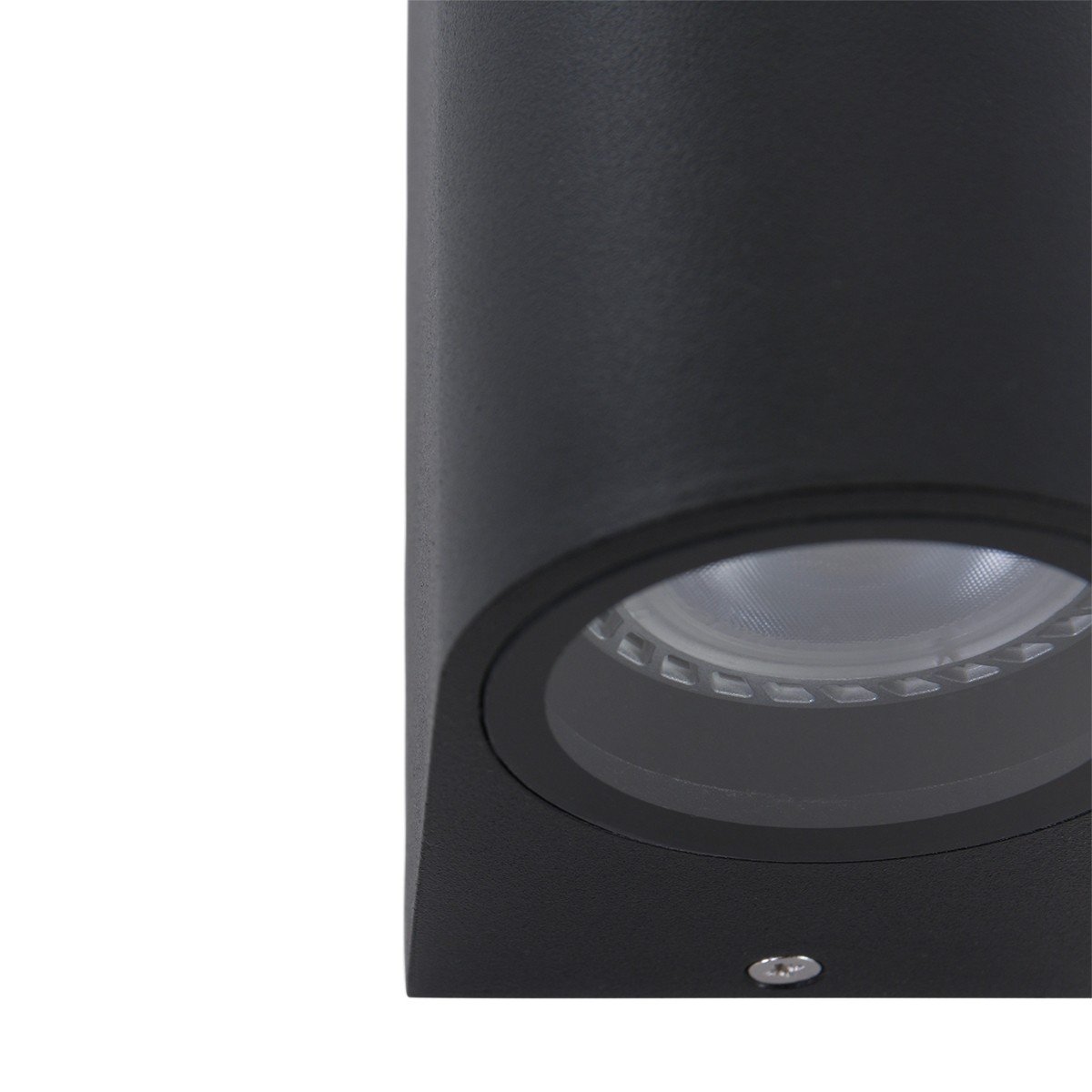 Compacte buitenlamp met een zwarte moderne kleur geeft zowel van de onderkant, als de bovenkant licht. De behuizing is gemaakt van aluminium en afgewerkt met een glasplaat. De krachtige lichtstraal verlicht het huis en tuin op een efficiënte manier. De zwarte lamp wordt inclusief 2 GU10 (345 Lumen, 2700 Kelvin) lichtbronnen geleverd. De compacte muurlamp heeft een diepte van 7 centimeter en is 15 centimeter hoog. Deze buitenlamp beschikt over een IP54 waarde. Dit betekent dat hij spatwaterdicht en stofvrij is.