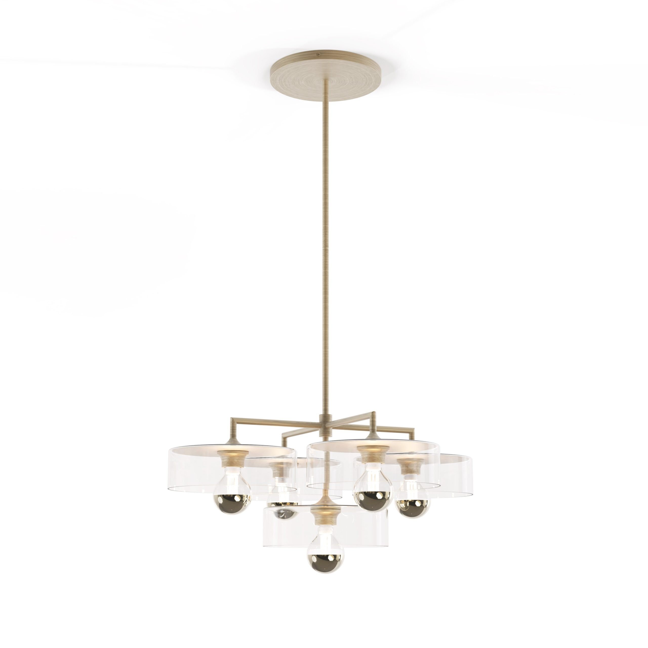 Een prachtige unieke hanglamp met 5 heldere glazen en met een chique brons/goudkleurig afwerking.