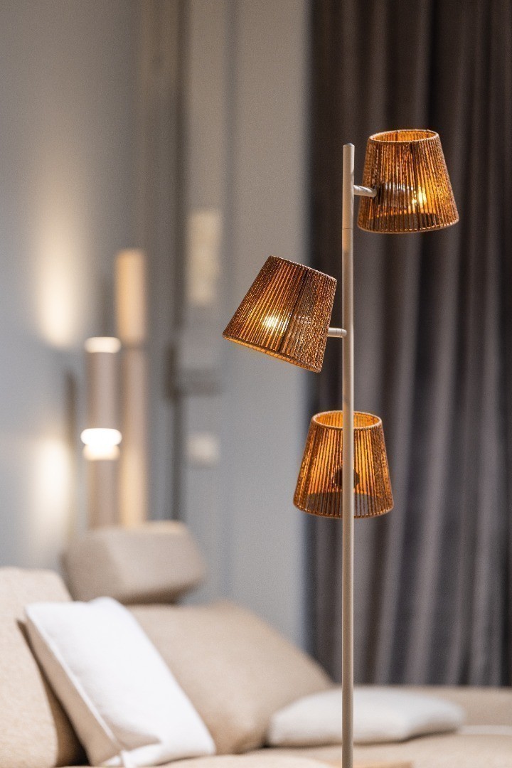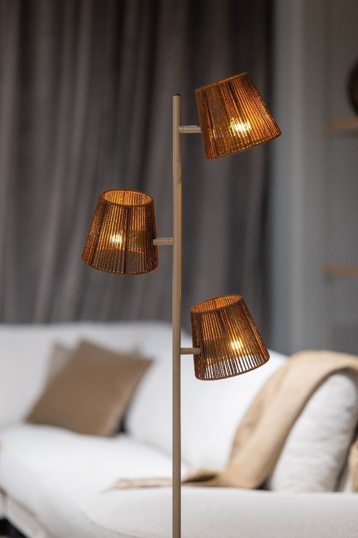 De geweven rotan kapjes zorgen voor een prachtig lichtspel wanneer de lamp aanstaat en maken deze vloerlamp tot een echte eyecatcher in uw interieur.