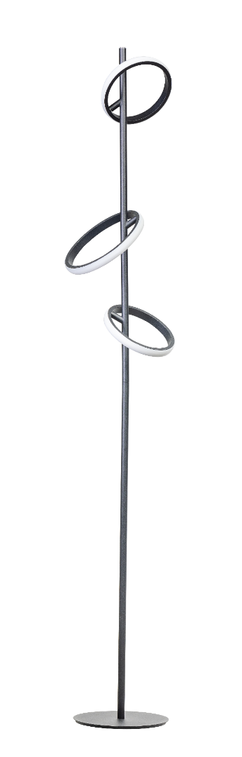 De ETH Jaimy vloerlamp is een stijlvol en modern designobject dat direct de aandacht trekt. Drie ringen met geïntegreerde LED-strips lijken rond de centrale stang te zweven en zorgen voor een warm, gelijkmatig en sfeervol licht. Iedere ring heeft een 6 W LED-strip, en de lamp is dimbaar in 3 standen via de schakelaar, zodat u eenvoudig de gewenste lichtsterkte kiest. Met een hoogte van 138 cm is deze vloerlamp een opvallend element in de woonkamer, hal of kantoor. Combineer hem met de andere lampen uit de Jaimy-collectie voor een harmonieus en samenhangend interieur.
