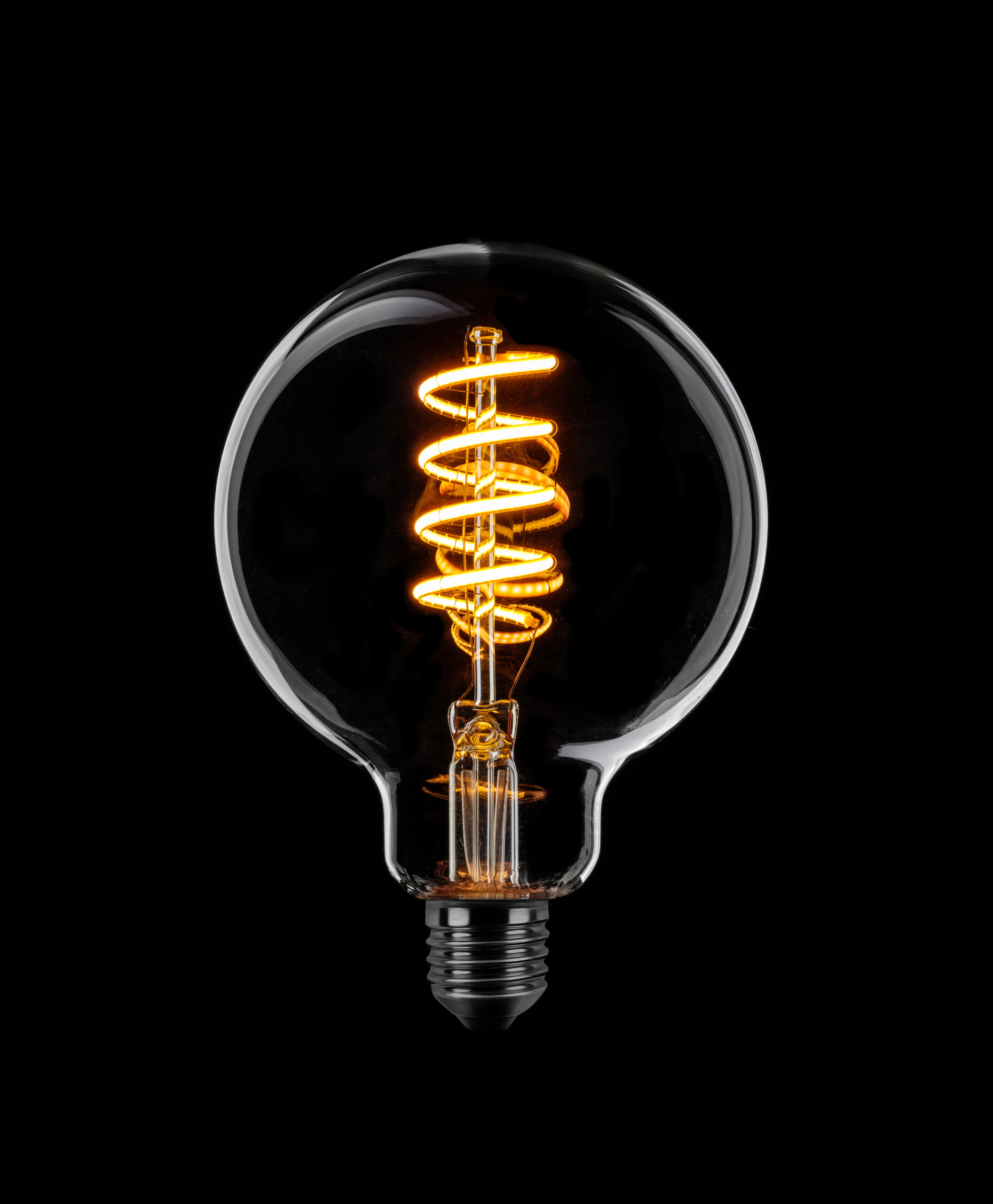 De globe vorm (Ø95 mm) in combinatie met het heldere glas en zichtbare spiraal filament geeft deze lichtbron een moderne en decoratieve uitstraling. Ideaal als compacte, maar lichtsterke blikvanger binnen het armatuur.