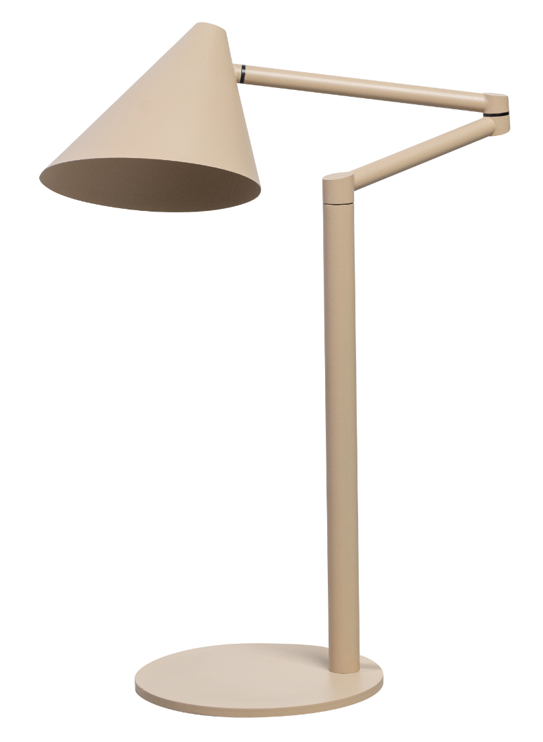 Deze zandkleurige tafellamp combineert modern design met praktisch gebruiksgemak. Perfect als bureaulamp of als sfeermaker op een bijzettafel. Tip: gebruik de nieuwe Pucc lichtbron – deze valt dieper in de kap en zorgt voor een nog beter gericht licht.
