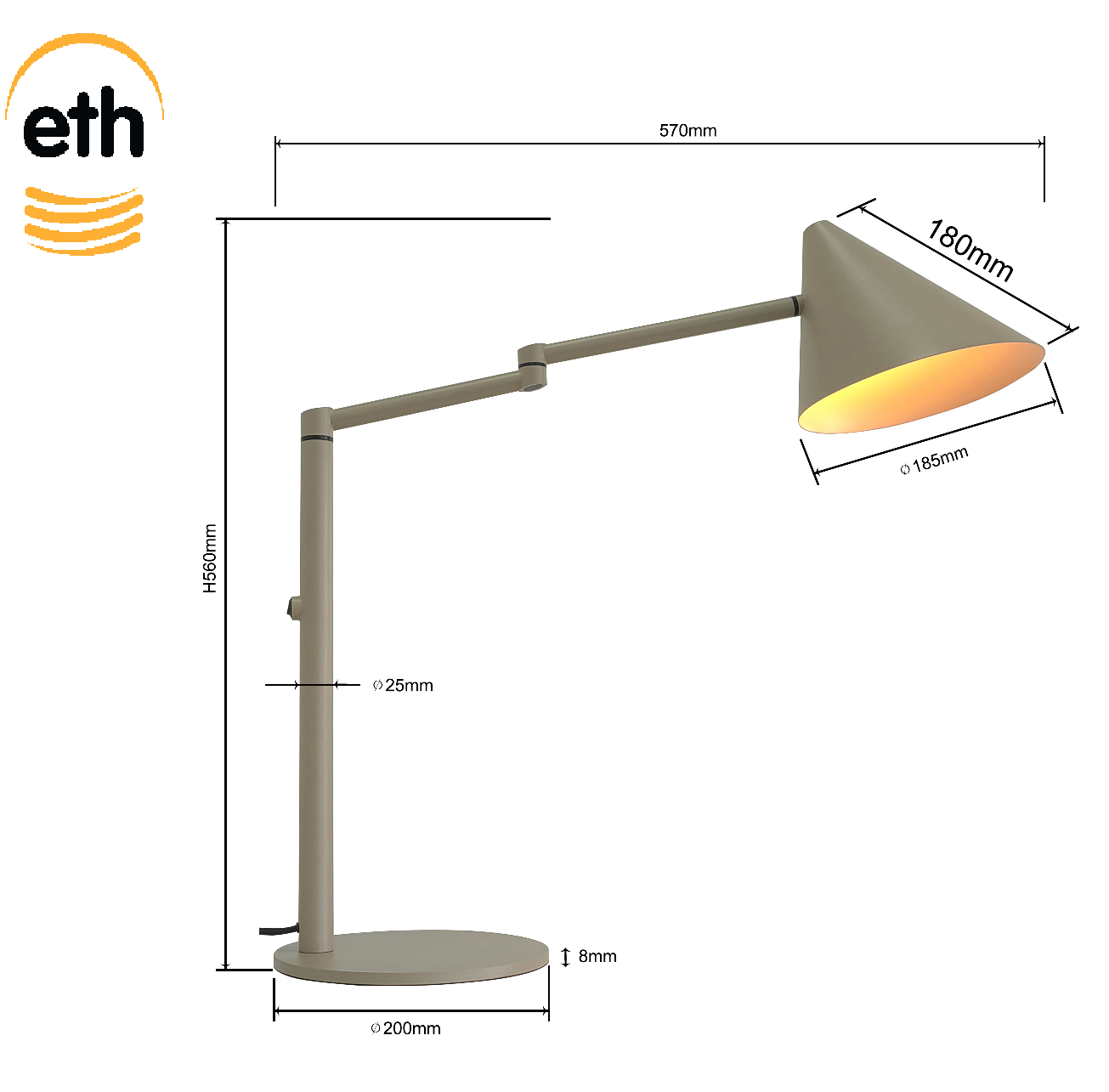 De ETH Marvis Tafellamp maakt deel uit van de stijlvolle Marvis collectie van ETH. Deze serie bestaat uit een wandlamp, vloerlamp en tafellamp die prachtig met elkaar te combineren zijn. Dankzij het strakke ontwerp en de zandkleurige afwerking past deze lamp in vrijwel ieder modern interieur.