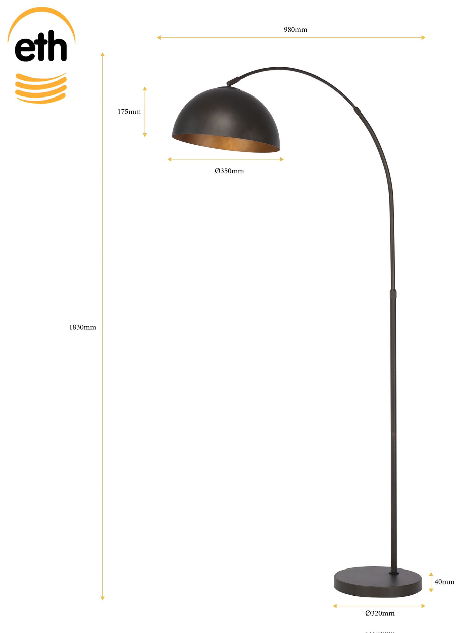 ETH Daan/Thijs Vloerlamp Boog 1xE27 Anodic brown