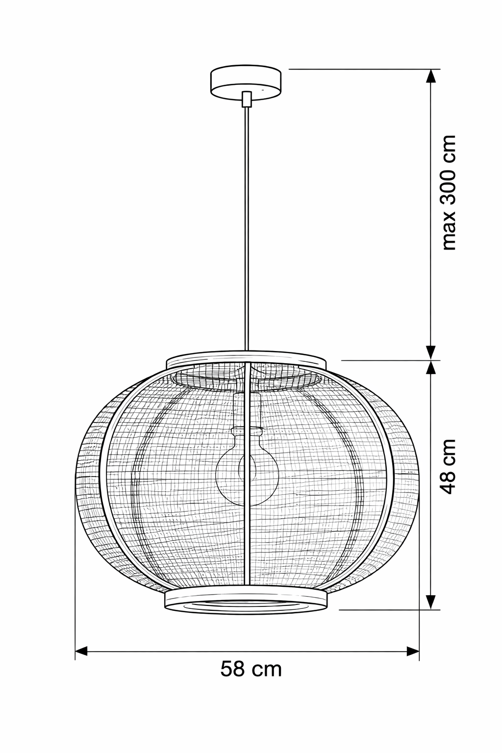 Met een diameter van 58 cm heeft deze hanglamp een mooie, aanwezige uitstraling zonder te dominant te zijn. De lamp hangt aan een verstelbaar snoer, waardoor de hoogte eenvoudig aangepast kan worden aan de ruimte en plafondhoogte. De lamp wordt bevestigd aan een plafondplaat met een diameter van 15 cm en een hoogte van 2,5 cm, wat zorgt voor een nette en strakke afwerking tegen het plafond.