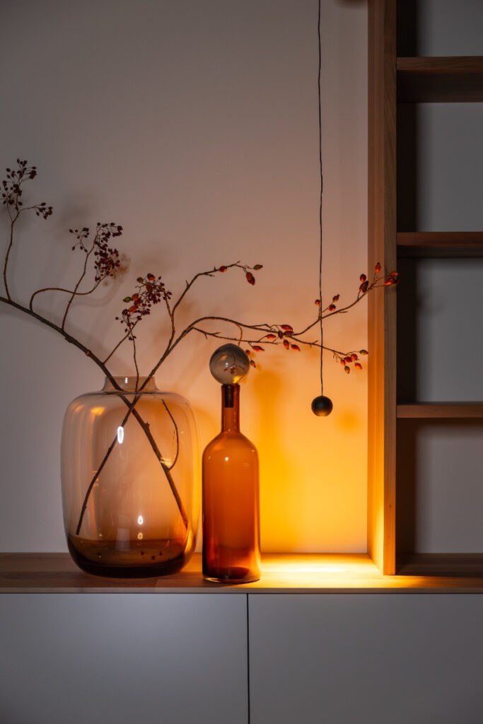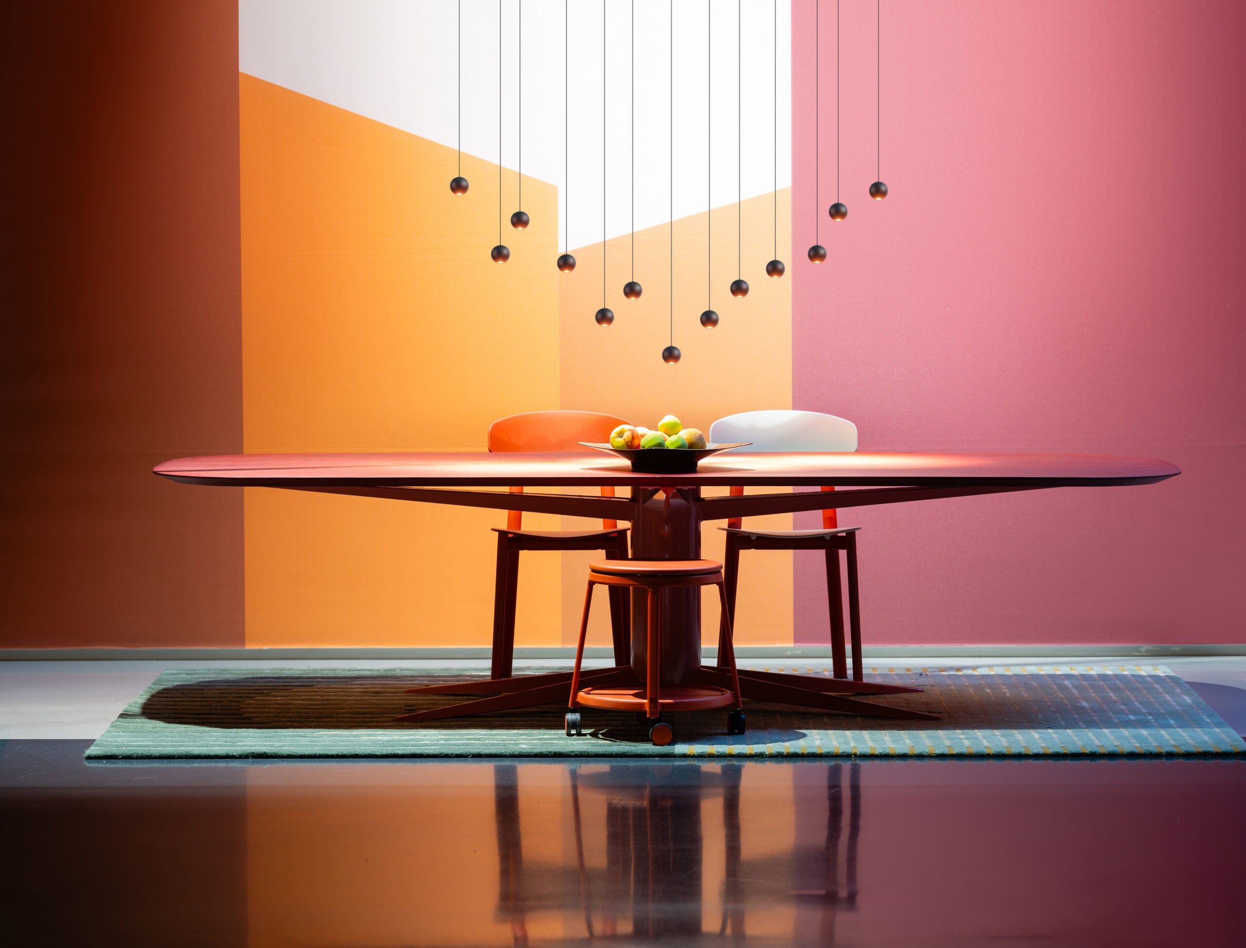 Dankzij de verstelbare snoeren zijn de lichtpunten op verschillende hoogtes te hangen, waardoor eenvoudig een eigen compositie kan worden gecreëerd. Dit geeft de lamp een dynamisch karakter en maakt elke opstelling uniek.