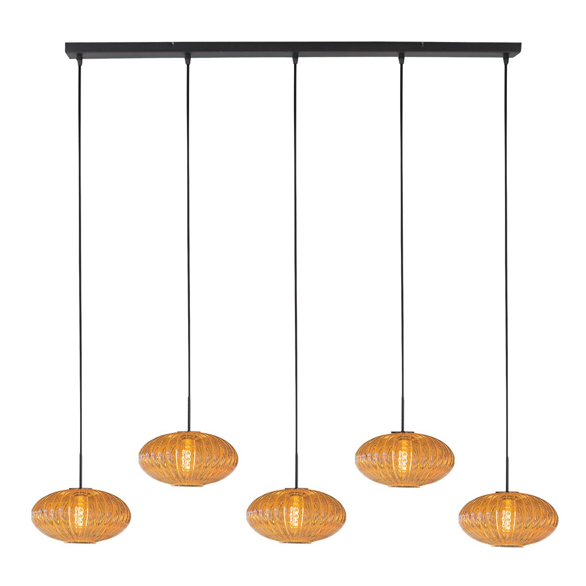 HaloSwap 4286ZW – Zwarte langwerpige hanglamp met warme amberkleurige glazen