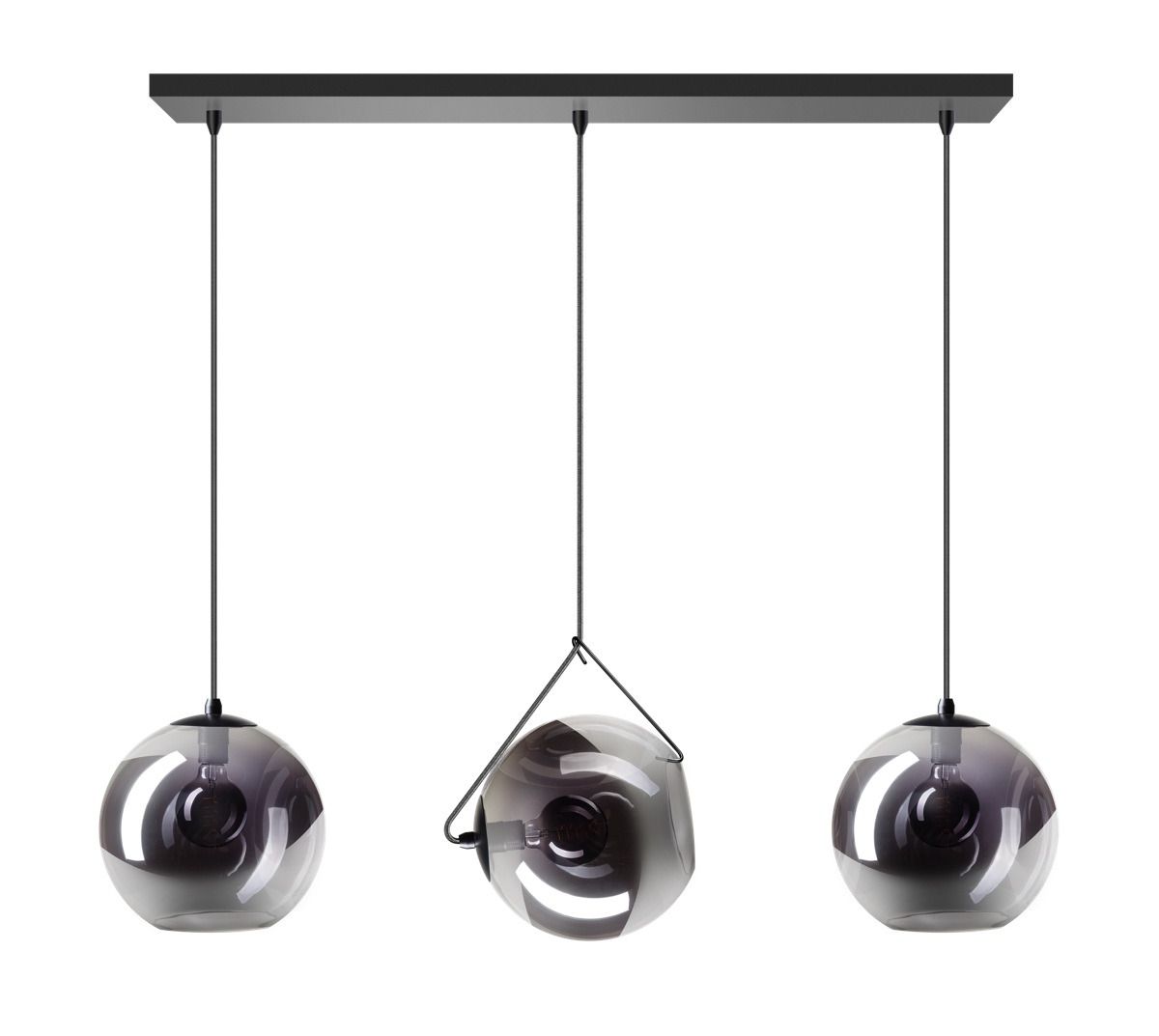 ETH Orb balk hanglamp 3x E27 smoke glas 25cm / zwart 90cm