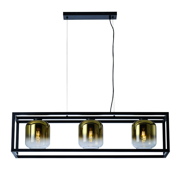 Hanglamp Dentro 3-lichts recht Zwart/Goud Glas