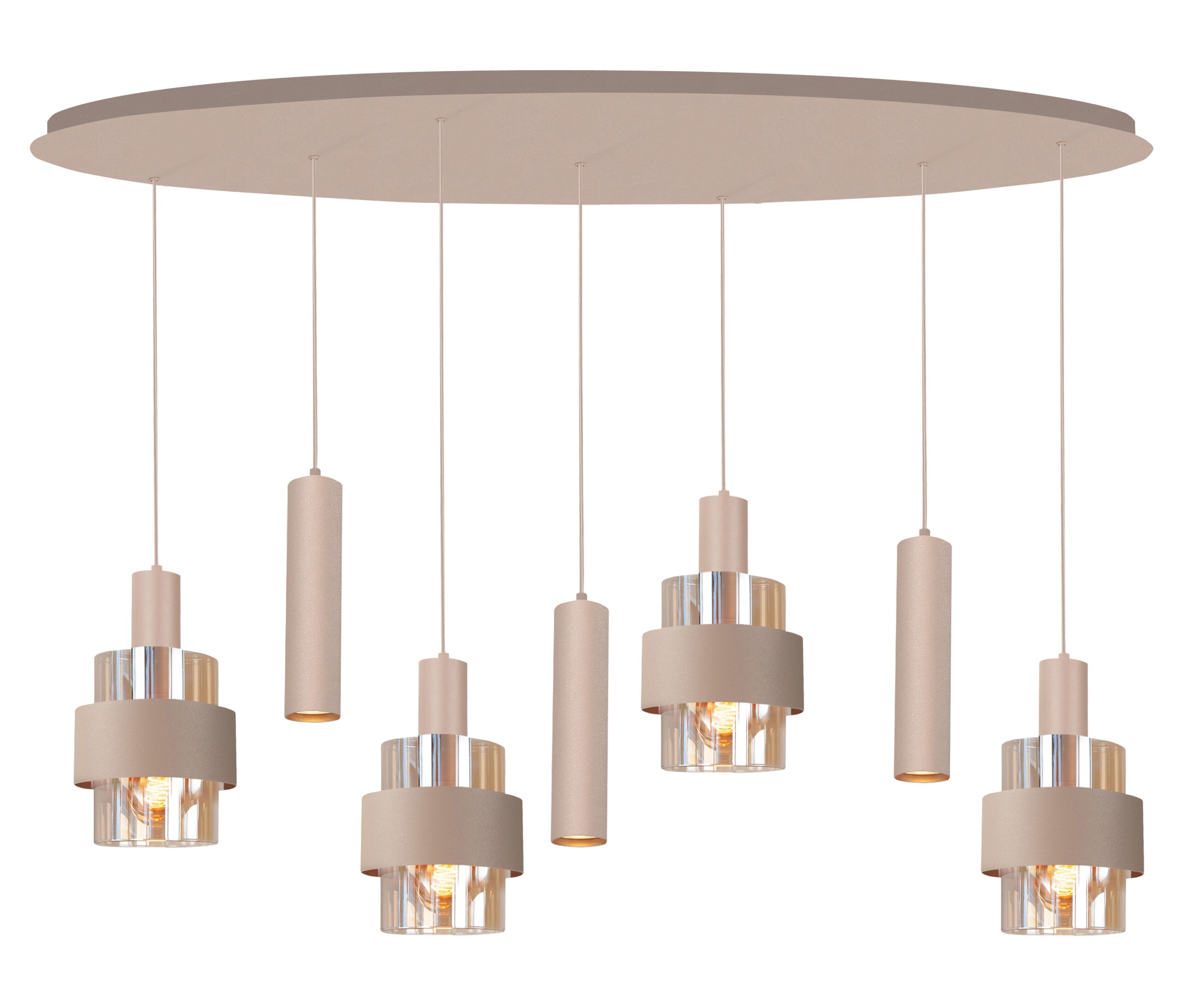 Hanglamp Marrone zand glas met kokers 7 lichts ovaal