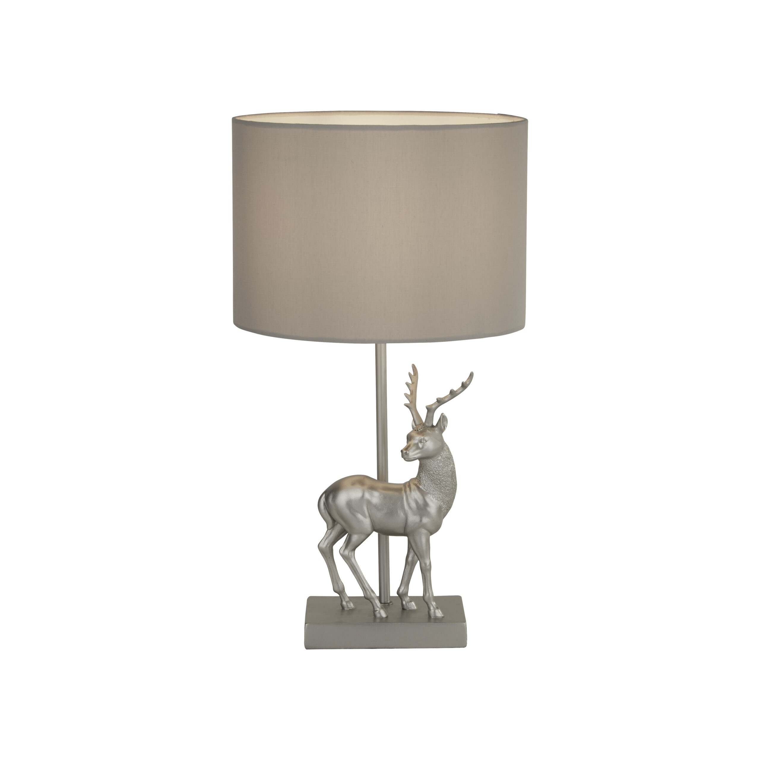 Hert tafellamp – Zilveren hars en grijze stoffen kap