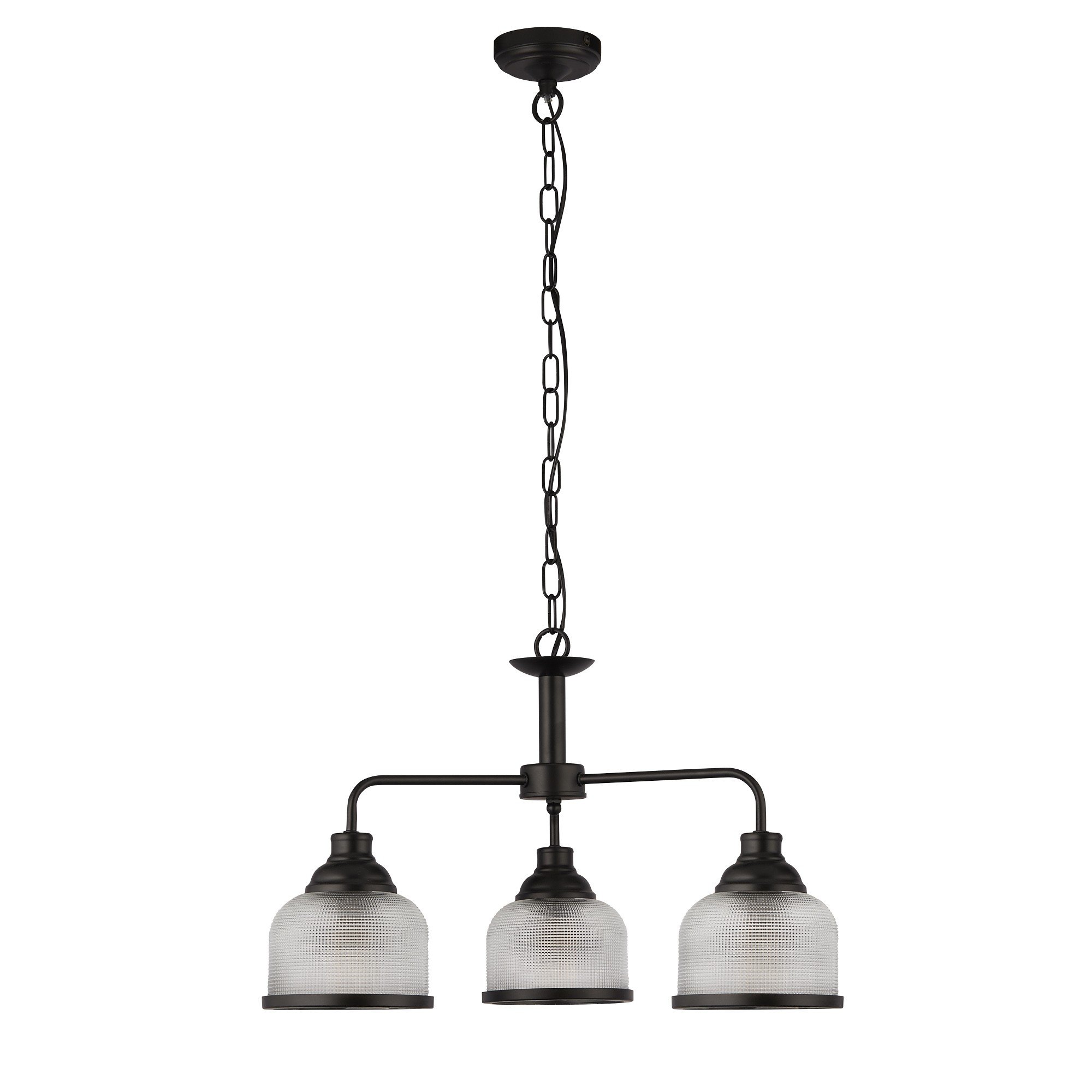 De kap heeft een stijlvolle zwarte rand, terwijl de helderglazen kap met een geribbelde binnenkant in halofaanstijl een vleugje elegantie toevoegt. Met zijn uitzonderlijke ontwerp en geschiktheid voor grote open ruimtes is de Highworth 3Lt hanglamp een must-have toevoeging aan uw huis.