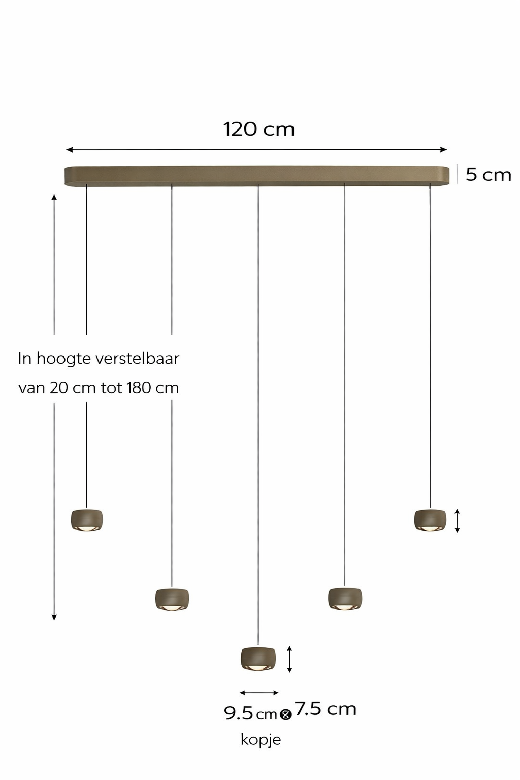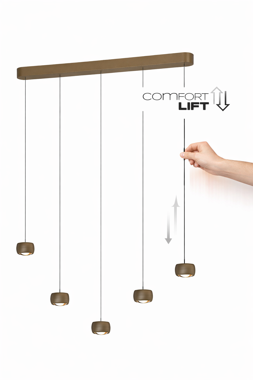 Freelight Hanglamp Cosmo 5-Lichts 120 cm – Comfortlift, Brons-Goud