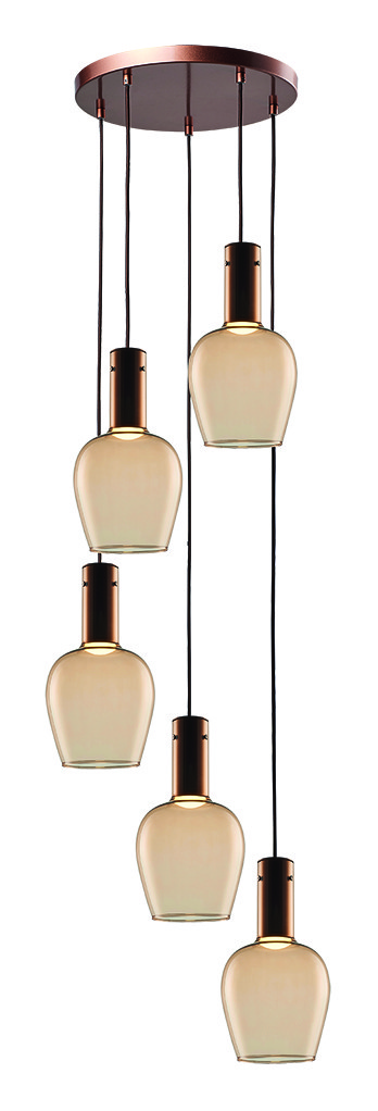 Hl. “Vino” 5-lichts Rond Brons-Goud/Amber Glas