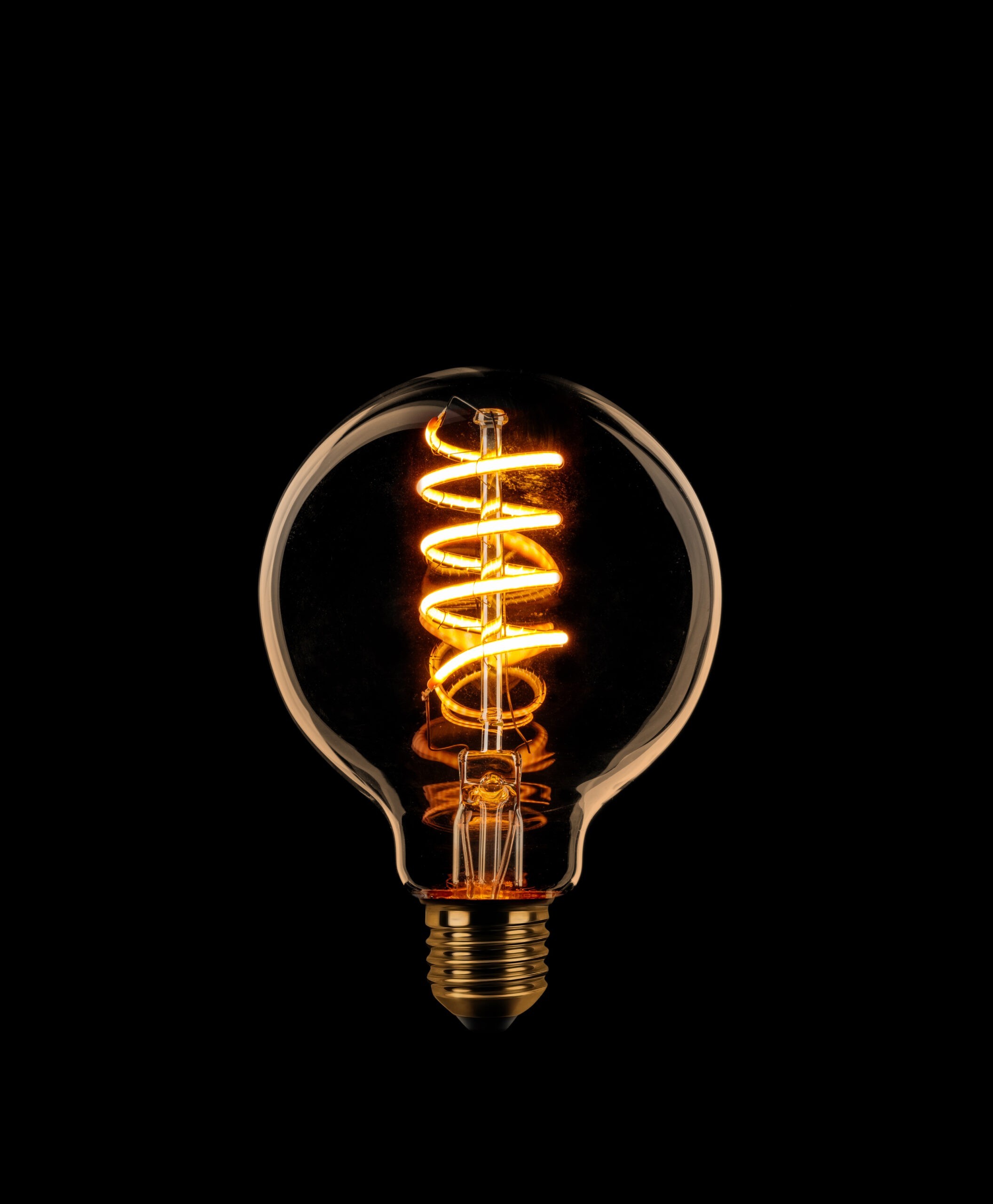 De compacte globe vorm (Ø80 mm) in combinatie met het goudkleurige glas en zichtbare spiraal filament geeft deze lichtbron een subtiel en decoratief karakter. Ideaal wanneer je een kleinere lichtbron zoekt met een warme uitstraling.