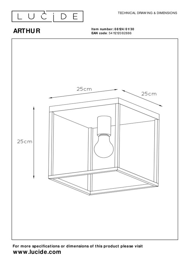 De mooiste cadeaus komen in een stijlvol doosje. Hetzelfde geldt voor Arthur. De basis van deze plafonnière is een kubus van 25 op 25 in metalen smeedwerk. De ranke zijden houden de constructie luchtig. Je hangt Arthur via de robuuste bevestigingsplaat aan het plafond. Hou je graag zelf de vingers aan de knoppen? Sluit dan eenvoudig een dimmer aan om op elk moment de juiste sfeer te creëren. Arthur blendt perfect in een moderne woonkamer, slaapkamer of keuken. En hij brengt een vleugje luxegevoel binnen, met dank aan de glimmende, koperen fitting.