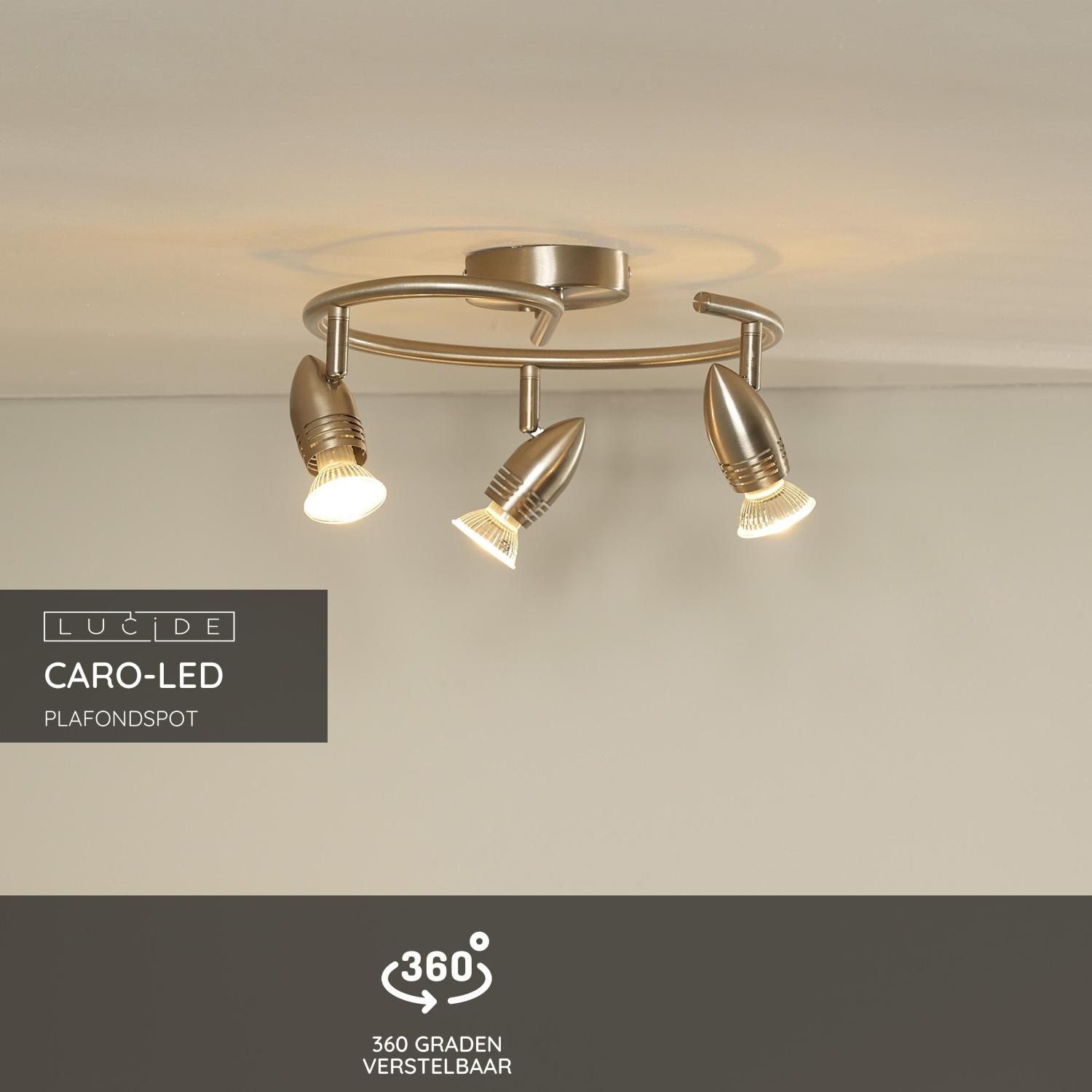 Lucide CARO-LED – Plafondspot – Ø 31 cm – LED – GU10 – 3x5W 2700K – Mat chroom