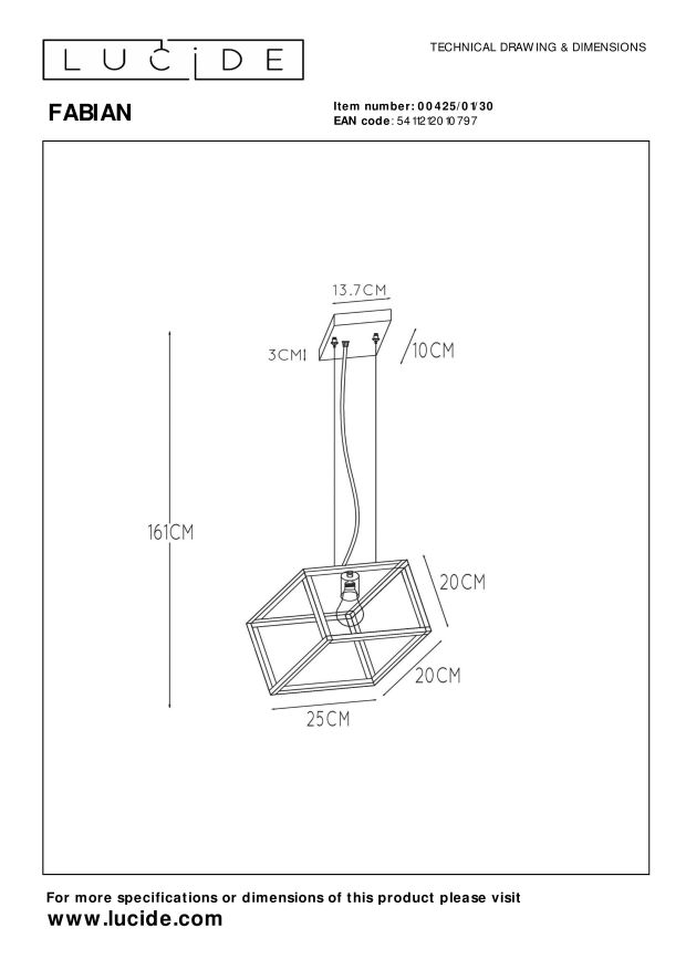 Is een hanglamp voor jou meer dan licht? Een strakke stijl en rechte lijn hoeft niet saai te zijn. Met zijn kubusvormige, opengewerkte kooi biedt Fabian een mooi zicht op de lichtbron binnenin. Zijn gekantelde frame geeft Fabian een unieke uitstraling. In combinatie met een zachte ledlamp of een mooie filamentlamp is hij de ideale partner in je knusse hoek. Ook aan tafel brengt Fabian sfeer. Deze metalen lamp is verstelbaar in hoogte tot wel 161 centimeter. Sluit een dimmer aan en Fabian creëert meteen de sfeer die je zoekt.