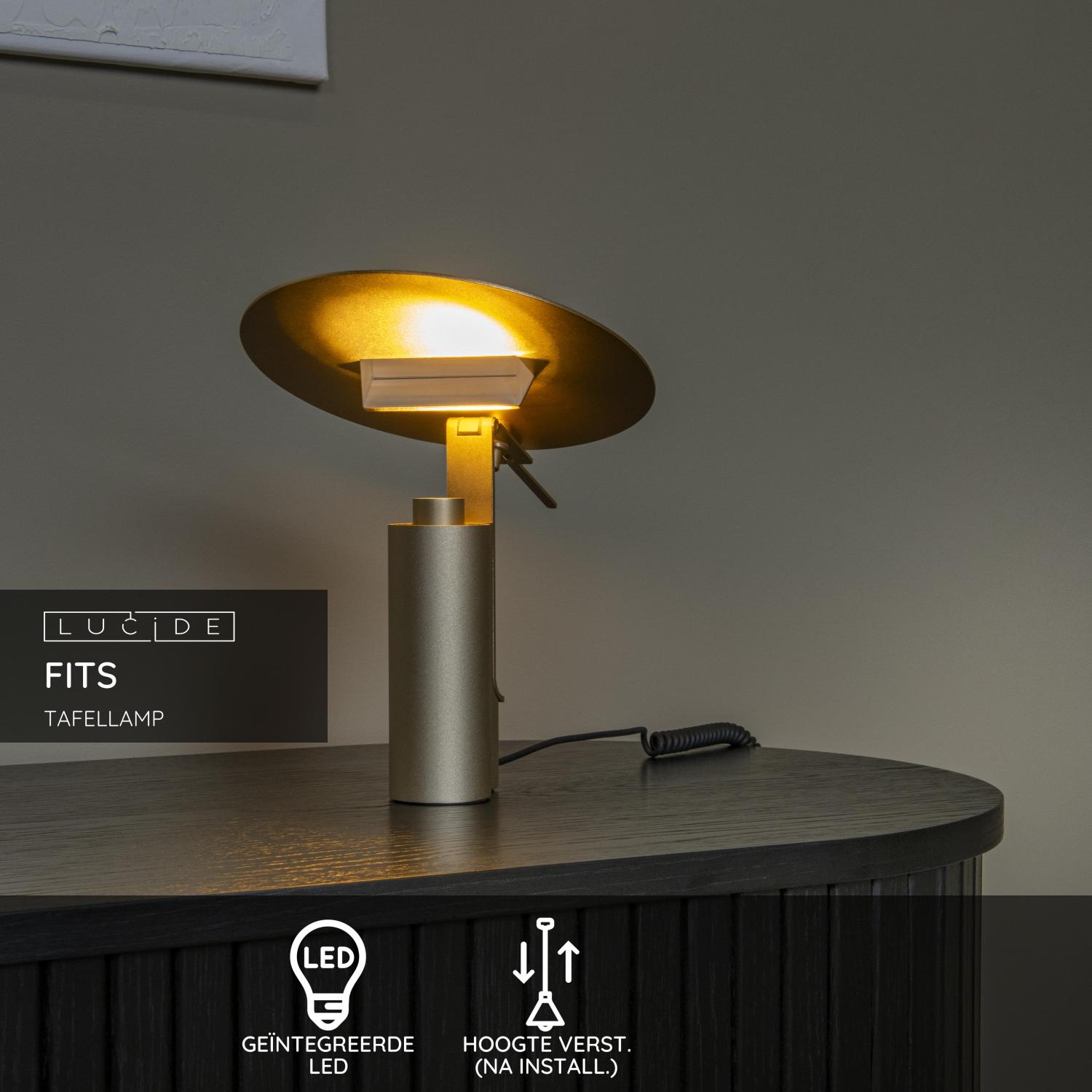 Lucide FITS – Tafellamp – LED – 1x7W 3000K – Mat Goud / Messing