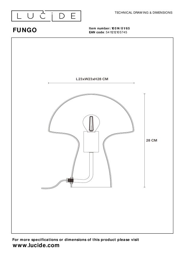 Klein, fijn en gezellig. Meer moet licht soms niet zijn. Fungo voldoet aan al deze aspecten. Ga voor de transparante versie en voeg wat retro toe aan je interieur, of kies de ondoorzichtige variant voor extra intimiteit. Fungo is van vele markten thuis en vergezelt met plezier je leesboeken in de boekenkast, je bloemen op de commode, of je kinderen in de slaapkamer. Wees wel wat behoedzaam want deze tafellamp van 28 centimeter hoog is vervaardigd uit hoogwaardig glas. Knip Fungo aan met de schakelaar op het snoer en geniet van je kleine vriend in huis.