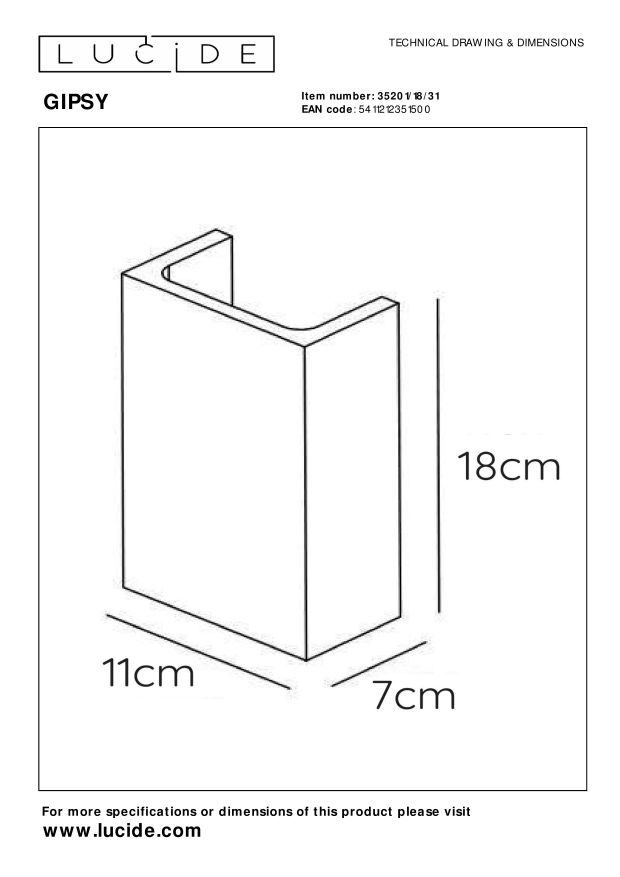 Gipsy is nieuw in het gamma van Lucide. Dit wandlicht speelt in op de hedendaagse trends en architectuur: strakke en duidelijke lijnen met veel maagdelijk wit. Dit wandlicht neemt de strakke lijnen duidelijk over en combineert dat met kwaliteitsvolle verlichting. Zo is Gipsy eenvoudig aan te sluiten op een dimmer. De afmetingen zijn 11 op 7 centimeter, met een hoogte van 18 centimeter. Een G9-fitting zorgt ervoor dat elke lamp of led makkelijk te vervangen is.