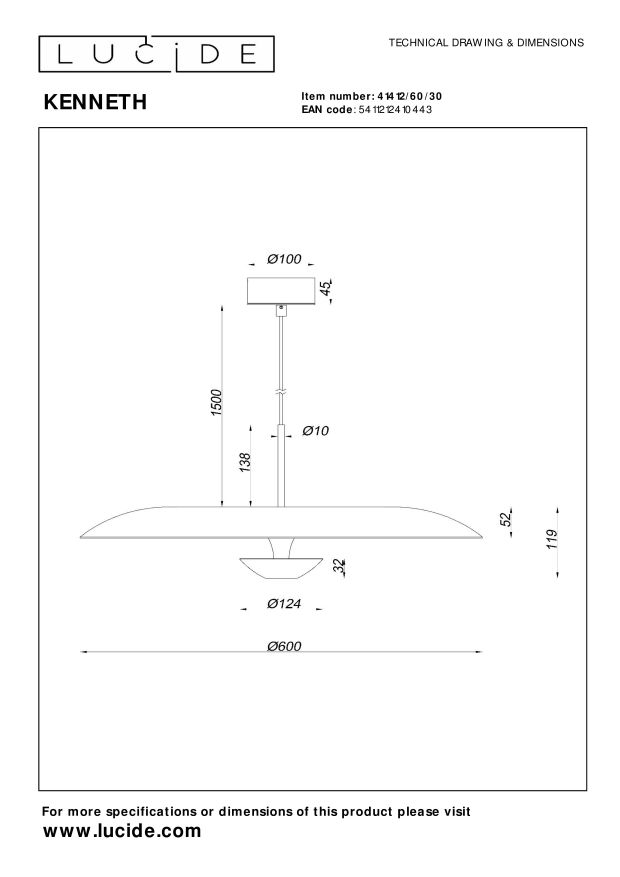 - Verbruik: 1x16W / 36V / Dimbaar (Lichtbron inbegrepen)