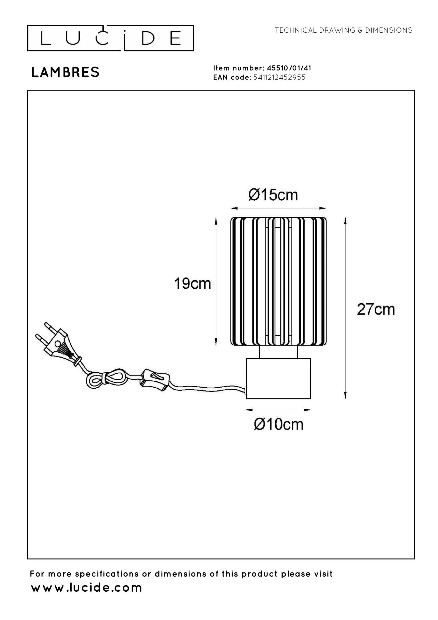 Minimalistisch design ontmoet praktische functionaliteit in de elegante tafellamp LAMBRES. Deze sfeermaker uit de categorie tafellampen en bureaulampen is vervaardigd uit taupe aluminium en straalt tijdloze eenvoud uit. Ideaal voor gebruik op nachtkastjes, dressoirs of bureaus. De ronde lamp is geschikt voor een E27 LED-lichtbron tot 40W en bedien je moeiteloos via de schakelaar op de kabel. Met een hoogte van 27 cm en een diameter van 15 cm past deze lamp moeiteloos in diverse interieurs. Kies voor een stijlvolle combinatie van vorm en functie met LAMBRES.