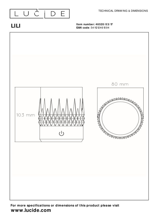 • Verbruik: 1x3W / 5V / Dimbaar (Lichtbron inbegrepen)