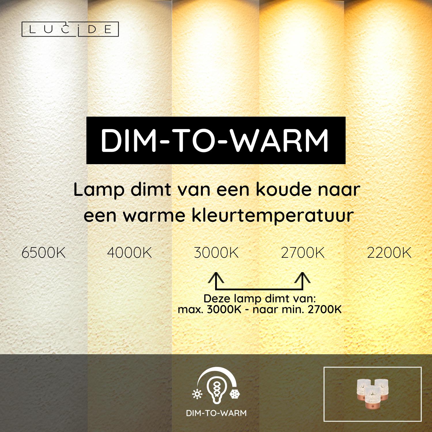 • Dim to warm, dimt naar warmere kleurtemperatuur (2700K-3000K)