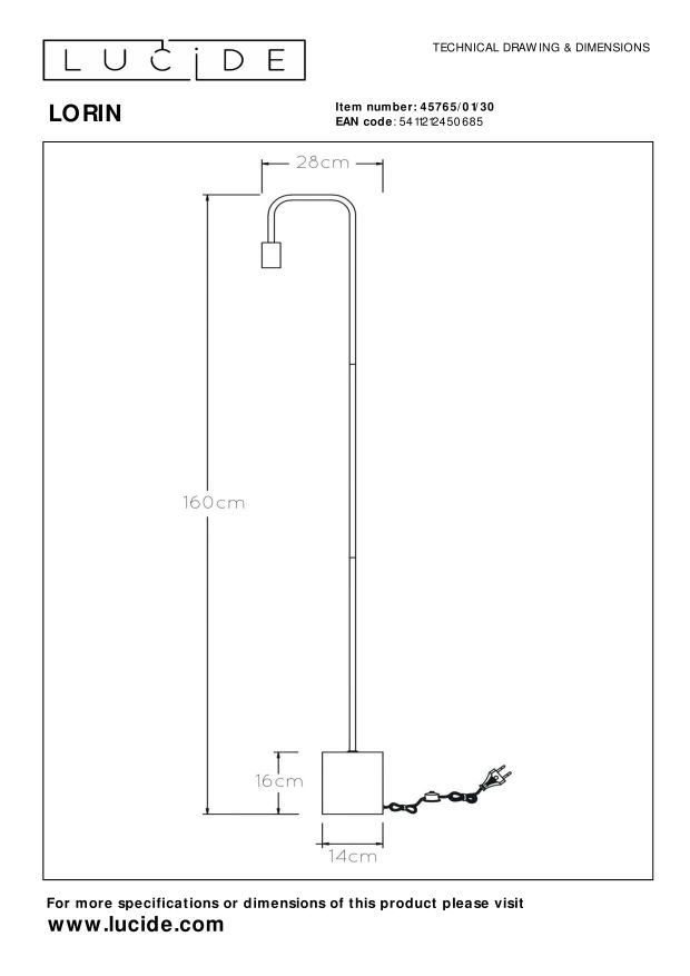 Lucide LORIN – Vloerlamp – 1xE27 – Zwart
