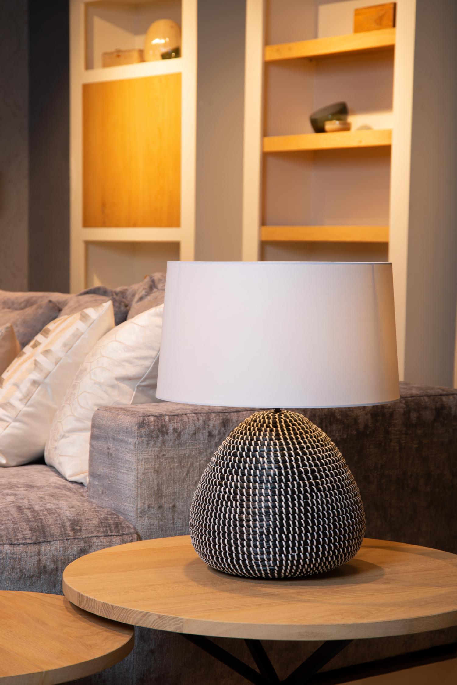 Hou je van zachte en natuurlijke materialen en ga je voluit voor duurzame producten, dan is Maduka de lamp die je zoekt. Deze tafellamp heeft een ronde kap van linnen en een kegelvormige voet uit hoogwaardig zeegras. Met een hoogte van 54 centimeter verdient Maduka een prominente plaats in je zithoek. De handige schakelaar op het snoer laat je toe de schemerlamp snel aan en uit te knippen. Zo beantwoordt Maduka op elk moment aan je wensen.