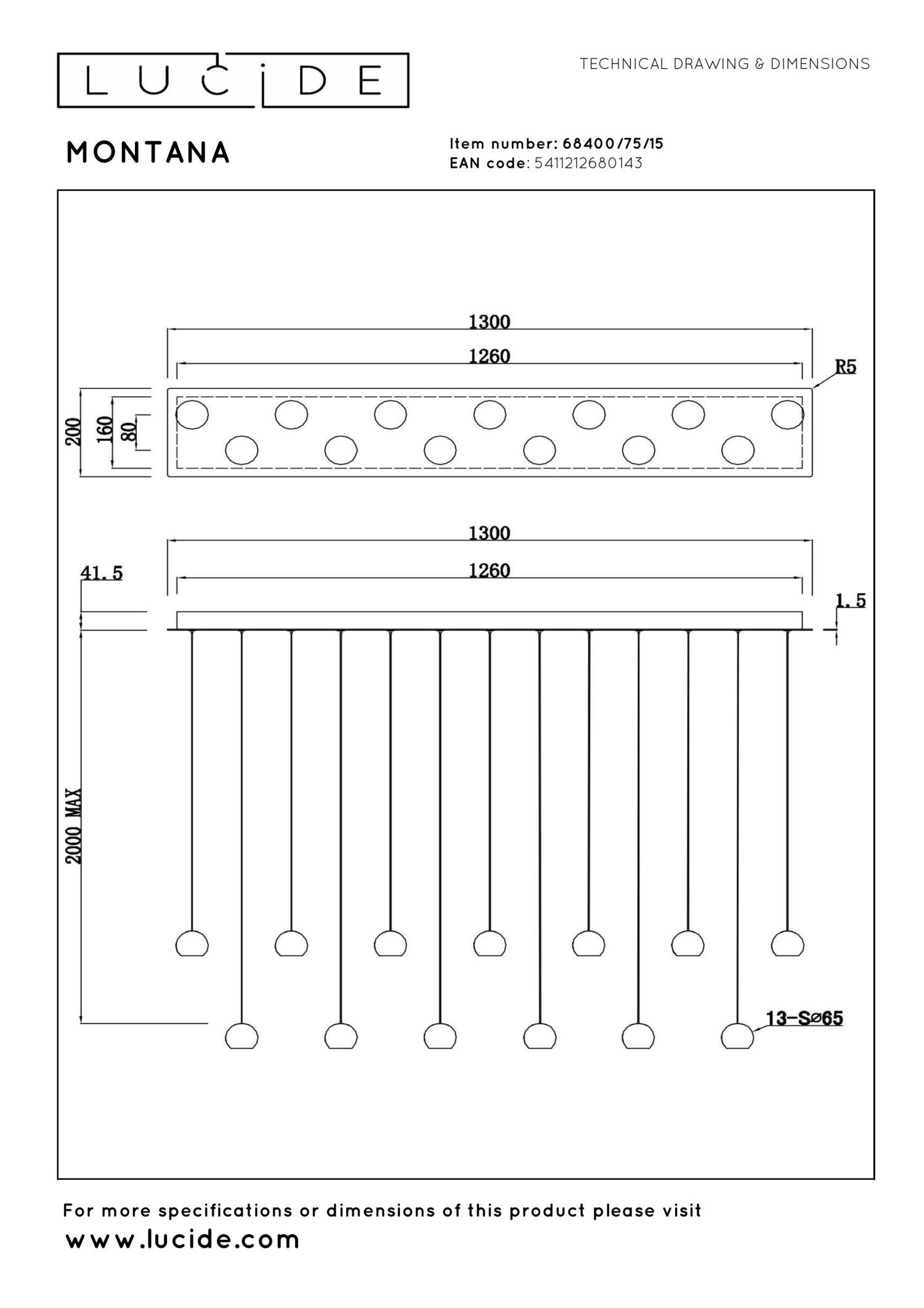 - Lichtbronnen: 13 × 5,7W geïntegreerde LED (inbegrepen)