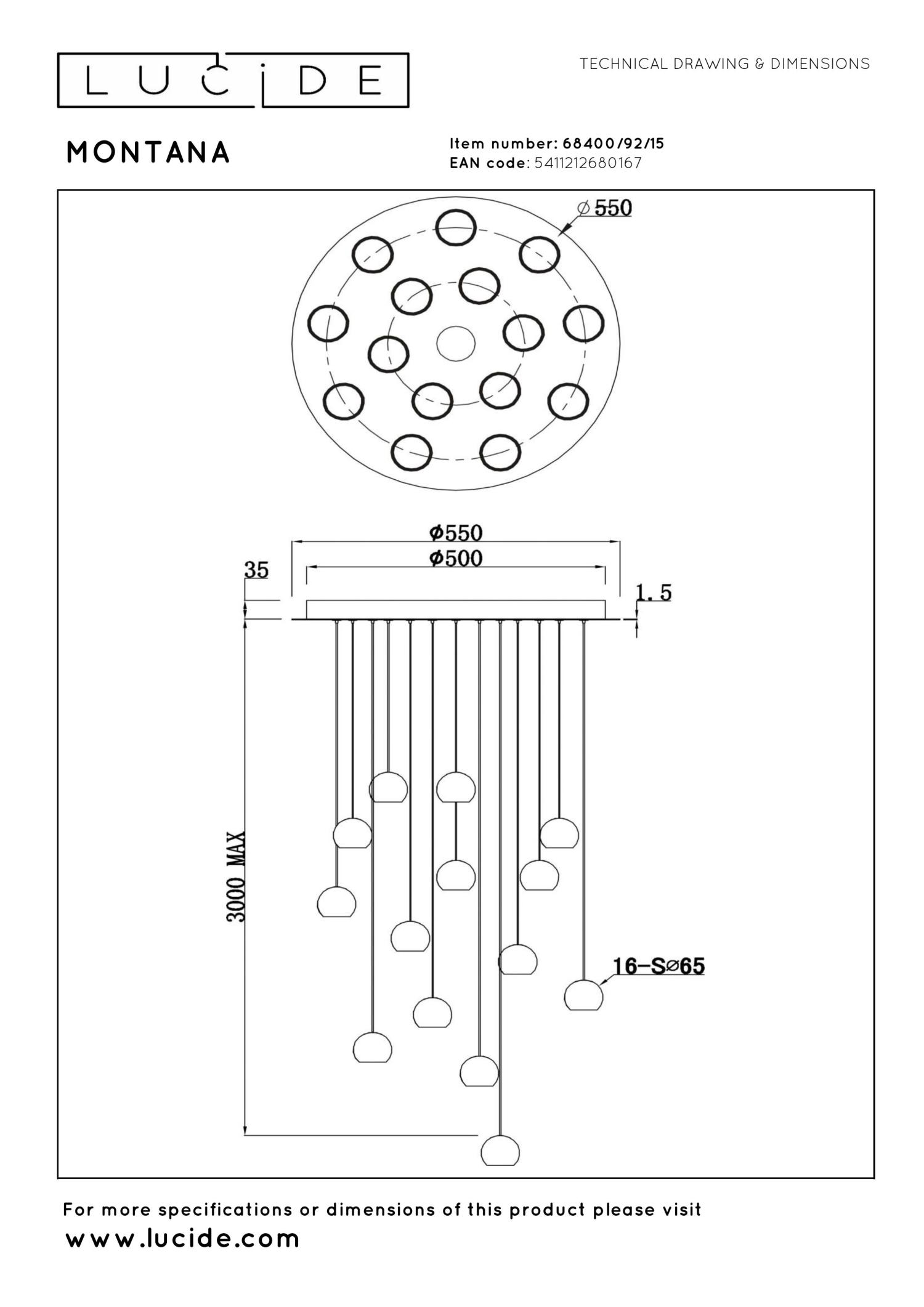 Lucide MONTANA – Hanglamp – LED Dimb. – CCT – 16×5,7W 2700K/4000K – Grijs ijzer | Premium