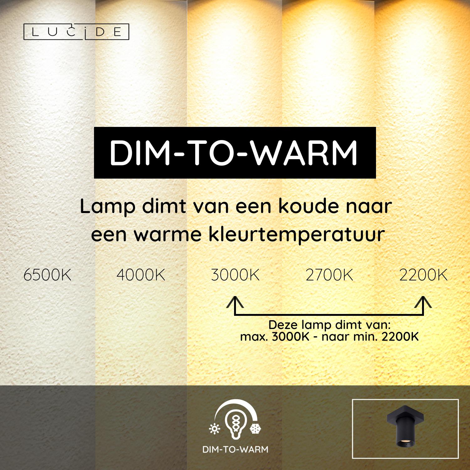 Lucide NIGEL – Plafondspot – LED Dim to warm – GU10 – 1x5W 2200K/3000K – Zwart