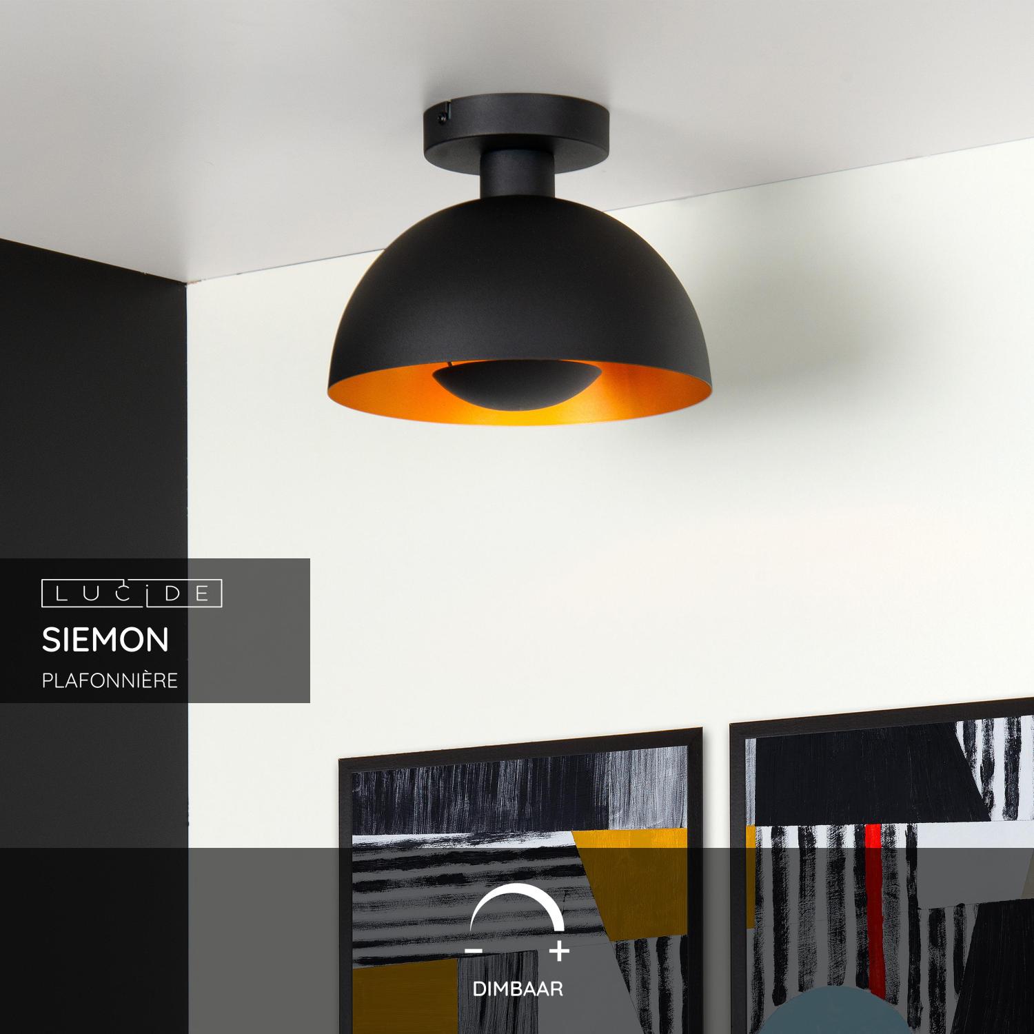 Lucide SIEMON – Plafonnière – Ø 25 cm – 1xE27 – Zwart