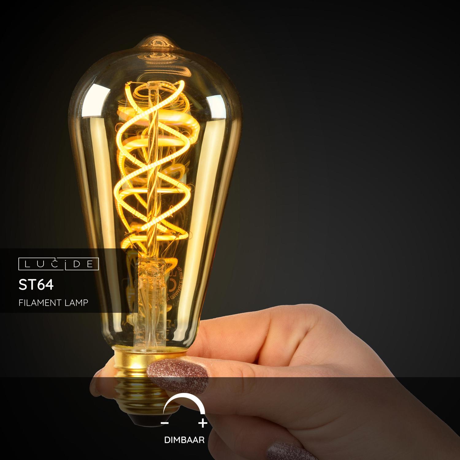Lucide ST64 – Filament lamp – Ø 6,4 cm – LED Dimb. – E27 – 1×4,9W 2200K – Amber