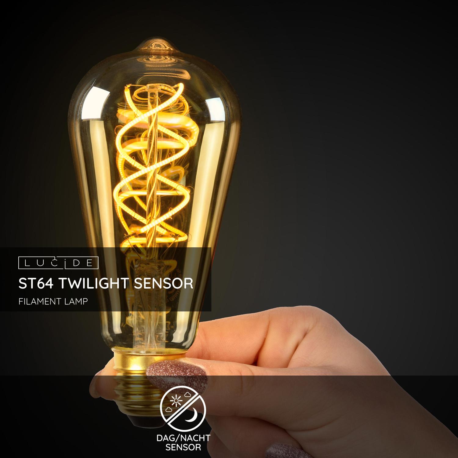 Lucide ST64 TWILIGHT SENSOR – Filament lamp – Ø 6,4 cm – LED – E27 – 1x4W 2200K – Dag/nacht sensor – Amber