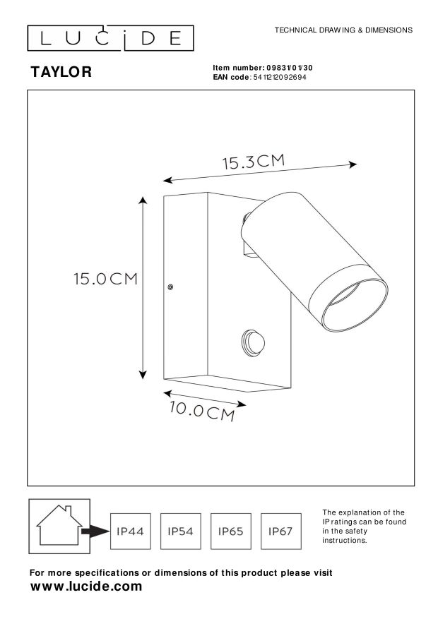 Ook buiten wil je rekenen op een straf design, technische snufjes en betrouwbare kwaliteit. Taylor verenigt deze eigenschappen in een modern en tijdloos ontwerp. Deze wandspot in hoogwaardig aluminium met één lichtbron bevestig je zonder zorgen tegen een gevel. De materialen zijn zorgvuldig gekozen voor langdurig en betrouwbaar buitengebruik. De lichtbron kan je draaien en kantelen tot ze in de juiste positie staat. Dankzij de subtiel ingewerkte bewegingssensor is Taylor ook uiterst zuinig in gebruik en geeft ze haar geheimen pas prijs wanneer dat ook effectief nodig is.