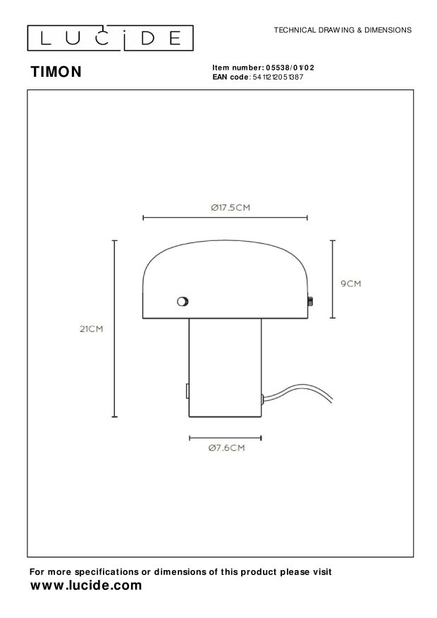 Eigenlijk past een stijlvolle, landelijke tafellamp in ieder interieur. En met de verfijnde combinatie aan materialen is Timon daarin misschien wel een voorloper. Zijn geheim? De combinatie van opaal glas en hoogwaardig staal tot een een functioneel geheel. Bovendien beschikt Timon over een 3-step-dimfunctie die je toelaat de intensiteit van de lichtbron perfect te regelen volgens de gewenste sfeer. En dat via een knap ingewerkt touch dim knopje in de voet van de lamp. Met datzelfde knopje zet je Timon ook aan en uit.