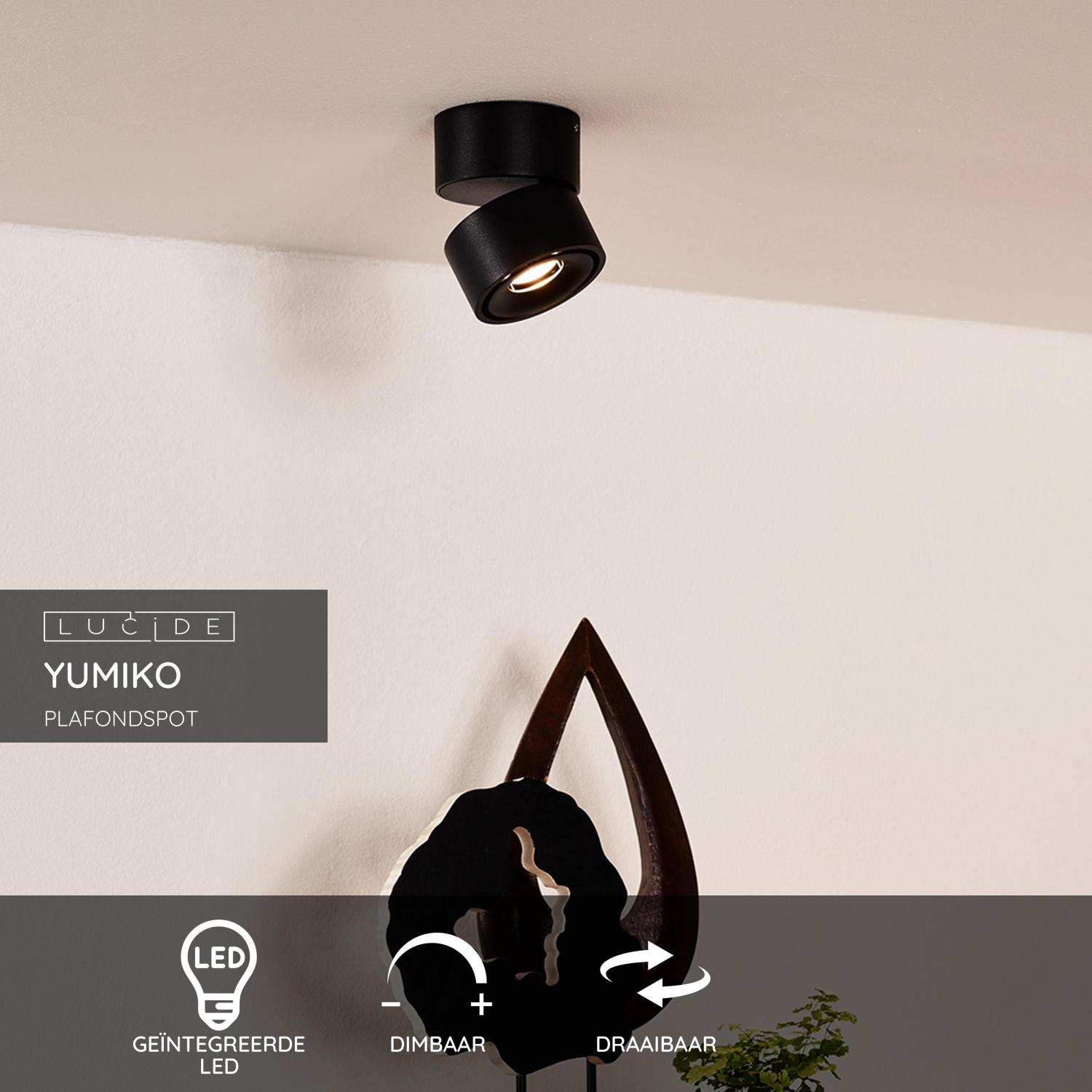Lucide YUMIKO – Plafondspot – Ø 7,8 cm – LED Dimb. – 1x10W 2700K – Zwart