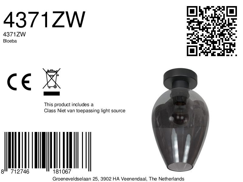 De Bloeba 4371ZW is een stijlvolle plafondlamp die warmte, elegantie en karakter samenbrengt. Deze lamp is een combinatie van het zwarte basisarmatuur Bloeba 4129ZW en de opvallende, handgemaakte glazen kap I15465S in een elegante druppelvorm. Met zijn royale afmetingen van 22,5 cm in diameter en 33 cm hoog is dit rookglas een echte blikvanger die elke ruimte verrijkt met sfeer.