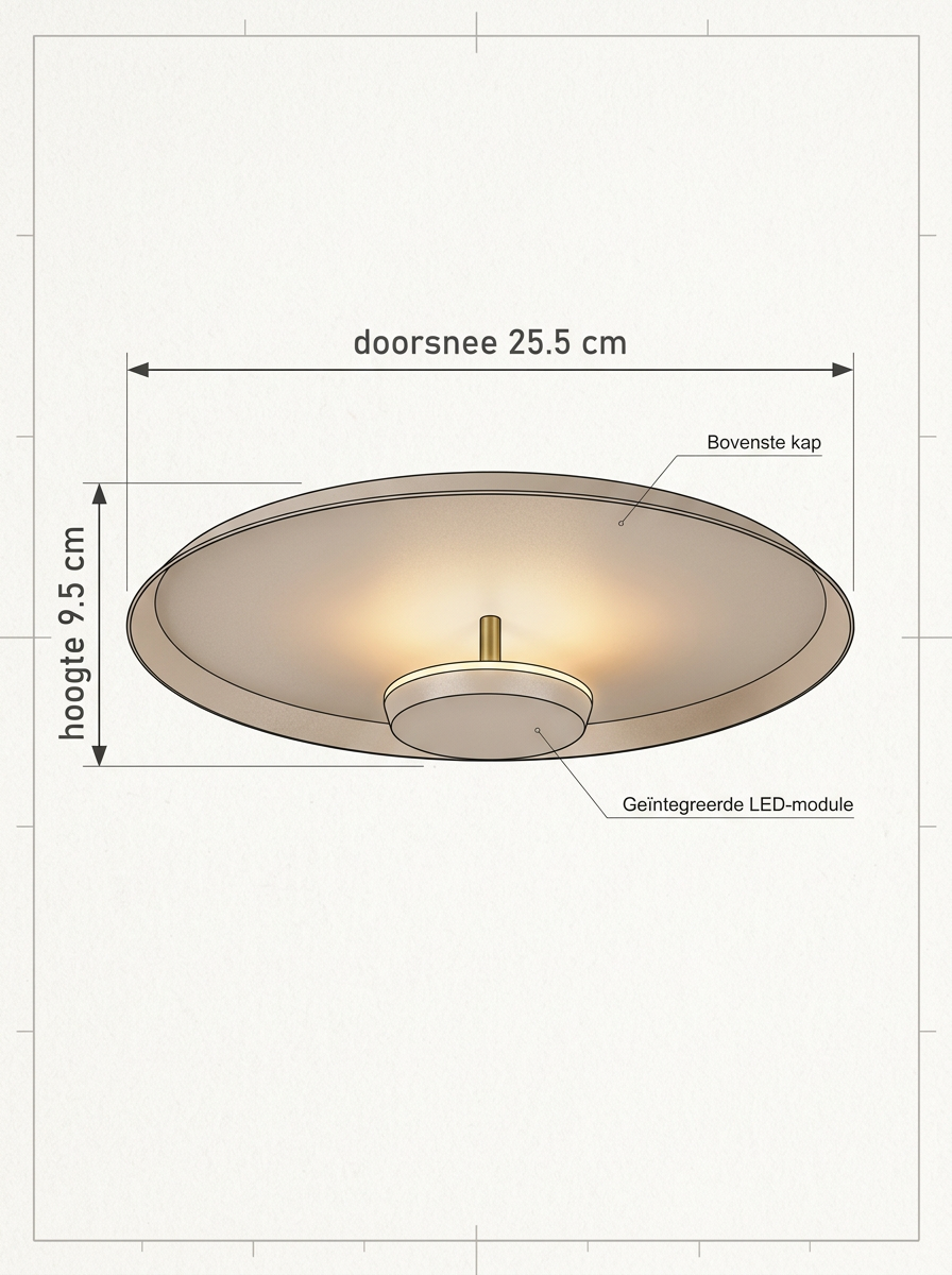 Met een diameter van 25,5 cm en een hoogte van 9,5 cm heeft deze plafondlamp een strak en compact design dat perfect past in onder andere de woonkamer, slaapkamer, hal of overloop.