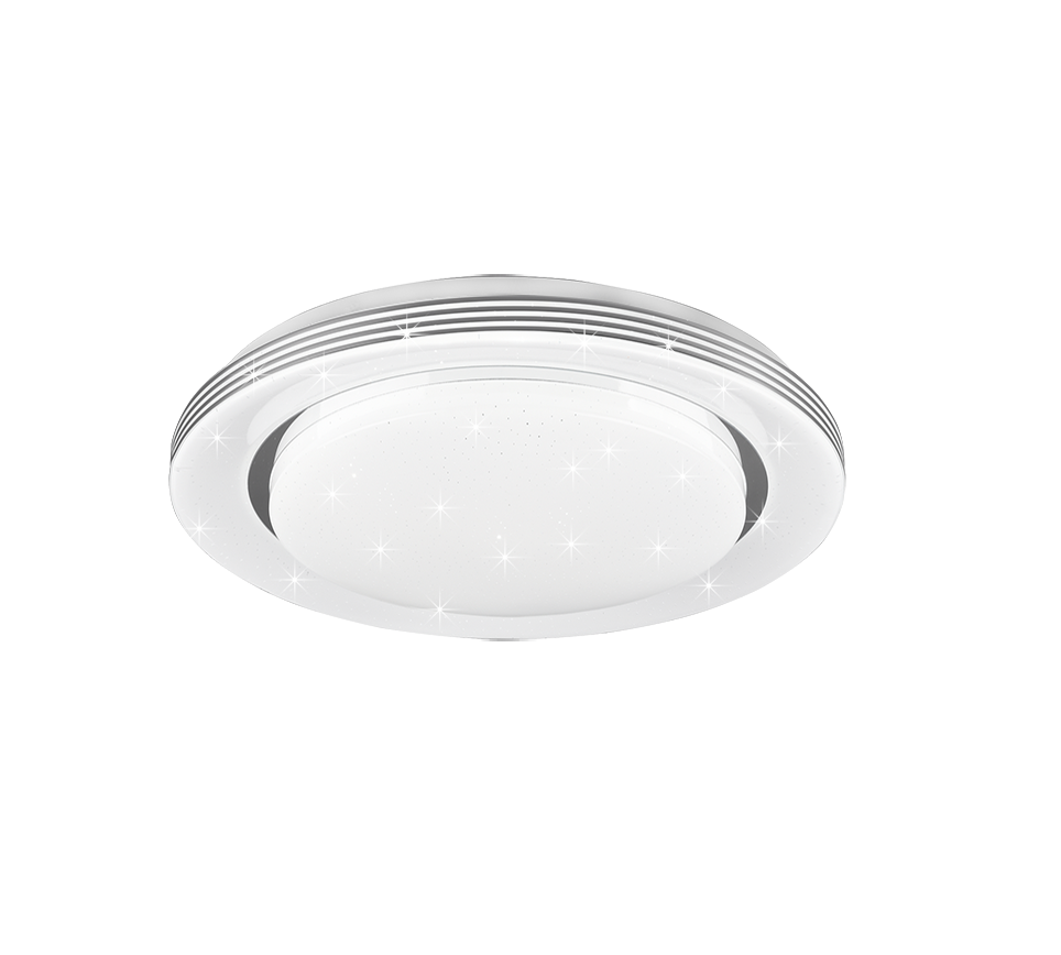 Eenvoudig design: praktische functies! De moderne plafondlamp ATRIA overtuigt met haar strak design en biedt veelzijdige toepassingsmogelijkheden. Om de lichtstemming heel individueel vorm te geven kunnen de lichtkleur en lichtintensiteit van de lamp heel gemakkelijk via een afstandsbediening ingesteld worden. Juist geplaats wordt de plafondlamp, dankzij het opvallende Starlight-deksel, een absolute blikvanger in elke woonruimte. Door het strakke design in wit gaat de plafondlamp gemakkelijk op in aanwezig inrichtingsstijlen en laat zich met verder kleurtonen combineren. Daarnaast beschikt de lamp over een moderne ledtechnologie die zich onderscheidt met een hoge lichtkwaliteit en energie-efficiëntie. In vergelijking met gewone halogeenlampen kan tot 80% bespaard worden op de energiekosten. Bovendien hebben ledlampen een lange levensduur, produceren minder warmte en zijn milieuvriendelijk.