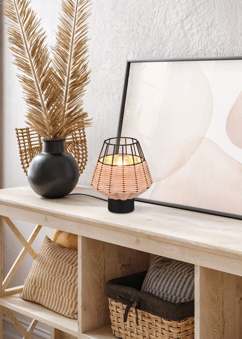 De serie BORKA laat het hart van boho-liefhebbers sneller kloppen. De tafellamp zet warme accenten met het trendy rotanvlechtwerk en brengt met behulp van de combinatie van natuurlijke materialen en metaal gezelligheid in huis. De lamp kan gemakkelijk worden in- en uitgeschakeld door middel van een snoerschakelaar op het nachtkastje of ladekast. De moderne mix van natuurlijk rotanvlechtwerk en mat zwarte metalen kap maakt de lamp tot een blikvanger in uw woonkamer. Voor een energiebesparende verlichting is het gebruik van een ledlichtbron aanbevolen. Deze zijn een optimaal alternatief voor gewone halogeenlampen en staan voor een hoge lichtkwaliteit en een energiebesparing van tot 80%. Bovendien profiteert u bij ledlichtbronnen van een lange levensduur, een geringe warmteontwikkeling en spaart tegelijkertijd het milieu.