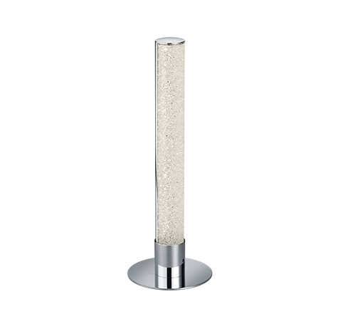 Kleur komt om de hoek kijken bij tafellamp LEIA. Een kleur uit het RGBW-spectrum kan worden geselecteerd met de bijgeleverde afstandsbediening, zodat je omgeving wordt omgetoverd in de gewenste kleur. Daarnaast kan de helderheid traploos worden gedimd zodat deze individueel kan worden aangepast aan de lichtomstandigheden. Het smaakvolle en verder vrij discrete ontwerp past prachtig in moderne woonruimtes waar heldere lijnen de boventoon voeren. De tafellamp heeft een hoogte van 40 cm en moet vanwege de kleureffecten prominent in het interieur worden geplaatst. De chroomkleurige voet en het kristallen deksel vormen een stijlvol contrast met de lichte kleuren en ronden het geheel perfect af. Daarnaast beschikt de lamp over een moderne ledtechnologie die zich onderscheidt met een hoge lichtkwaliteit en energie-efficiëntie. In vergelijking met gewone halogeenlampen kan tot 80% bespaard worden op de energiekosten. Bovendien hebben ledlampen een lange levensduur, produceren minder warmte en zijn milieuvriendelijk.